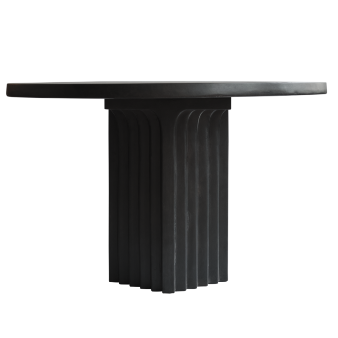 Arc Dining Table pairs perfectly with the Brutus Dining Chairs for a brutalistic and architectural look.