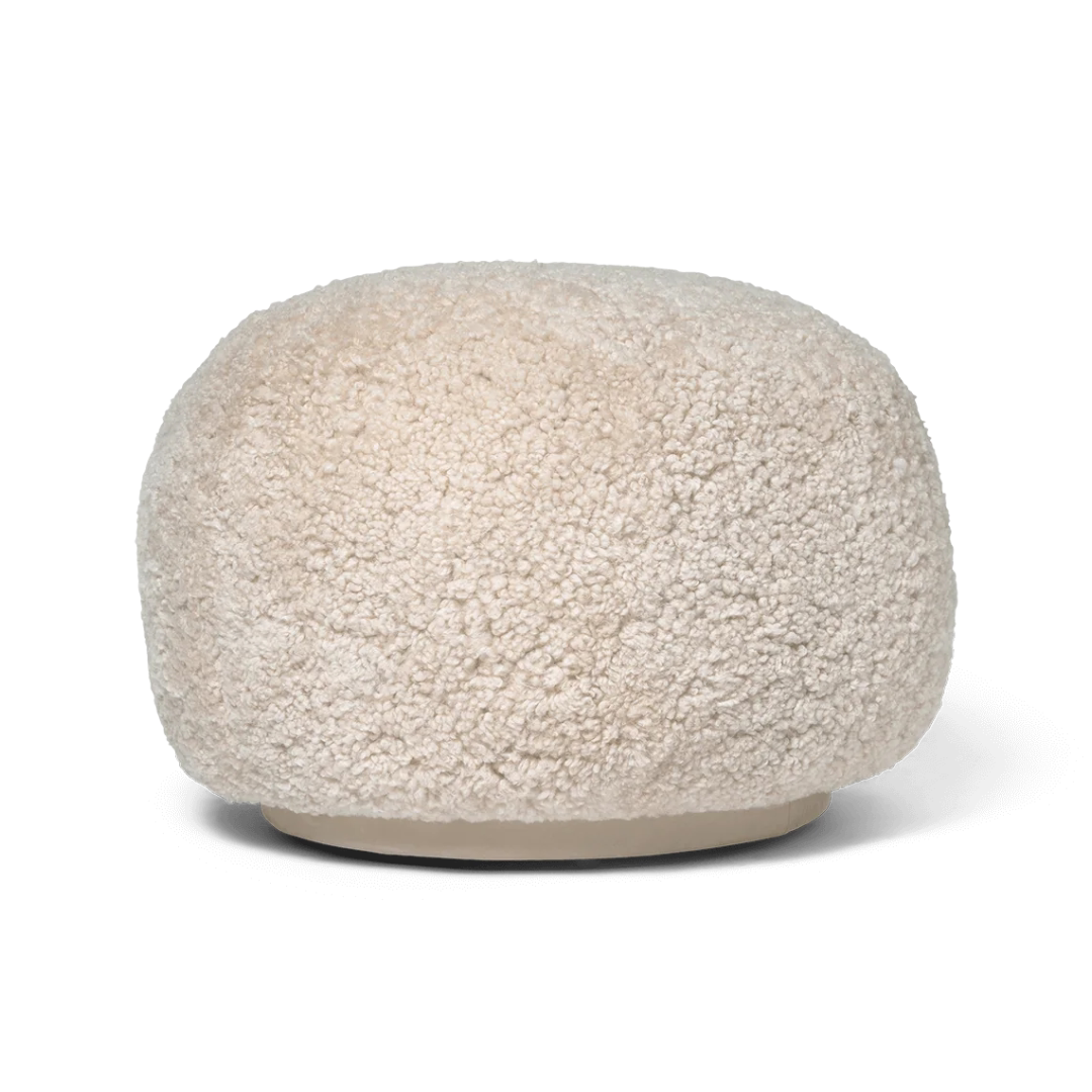 The Ferm Living Rico Collection introduces a blend of curves and form to timeless design, characterized by gentle lines and a welcoming presence. The Rico Pouf - Sheepskin - Moonlight is an ideal match for the Rico Lounge Chair, serving as both a footrest and an additional seat. Its sinuous shape infuses a modern touch of comfort and sophistication into any space.