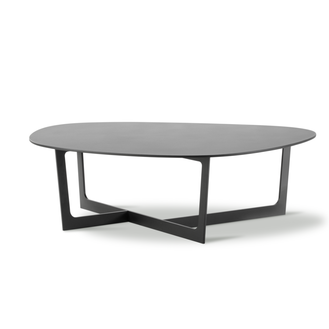 Insula is a series of distinctive coffee tables made in pure aluminum and designed by Danish designers Mette Bartholin-Jensen and Morten Ernst. The asymmetrical yet balanced shape of the tabletop is balanced by the streamlined definition seen in the slim table top and angular frame. Almost like small islands, the tables have a floating feeling. Their striking silhouette makes them equally beautiful as a stand-alone piece or clustered together to form an archipelago.