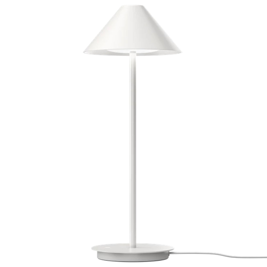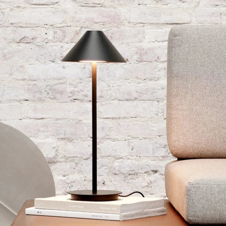 The Keglen Table, born from a collaboration between BIG Ideas and Louis Poulsen in 2017, embodies simplicity and uniqueness in lighting design. Inspired by the geometry and essence of light, it originated from a pendant designed for the Tirpitz Museum in Denmark. The lamp's edgy, galvanized finish complements the museum's architecture and the surrounding landscape. Designed to offer a wide range of lighting options, the Keglen family showcases consistent design details across various sizes. With its cone-shaped shade and organic glass insert resembling a drop of water, the Keglen Table adds a graphic and simplistic aesthetic to any interior. Available in black or white with a matte finish, it features a base or pin mounting option, making it suitable for both work and study environments.