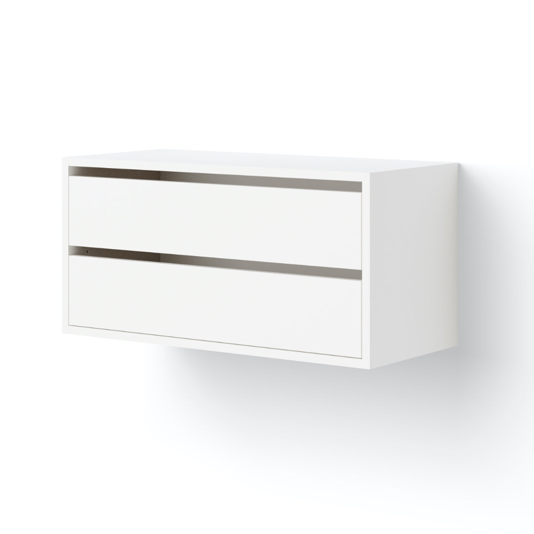 Designed to complement your existing shelving system or stand out as a focal point on your walls, the drawers are crafted with minimalist handles that maintain the cabinet's sleek and seamless aesthetic.