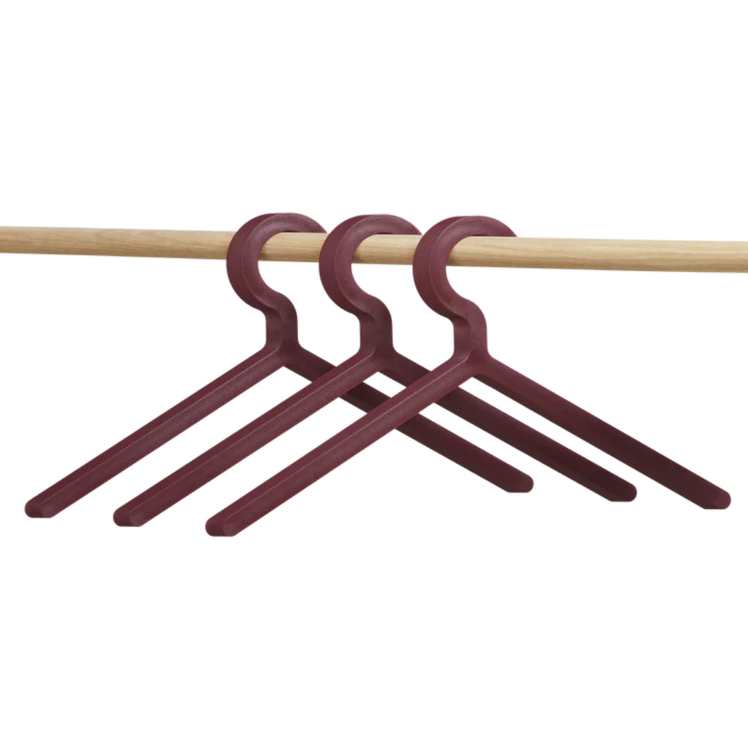 Illusion Hangers are available in Black or Deep Red and come in sets of three. They are made from ABS Plastic. Use them with the O&O Clothes Rack.
