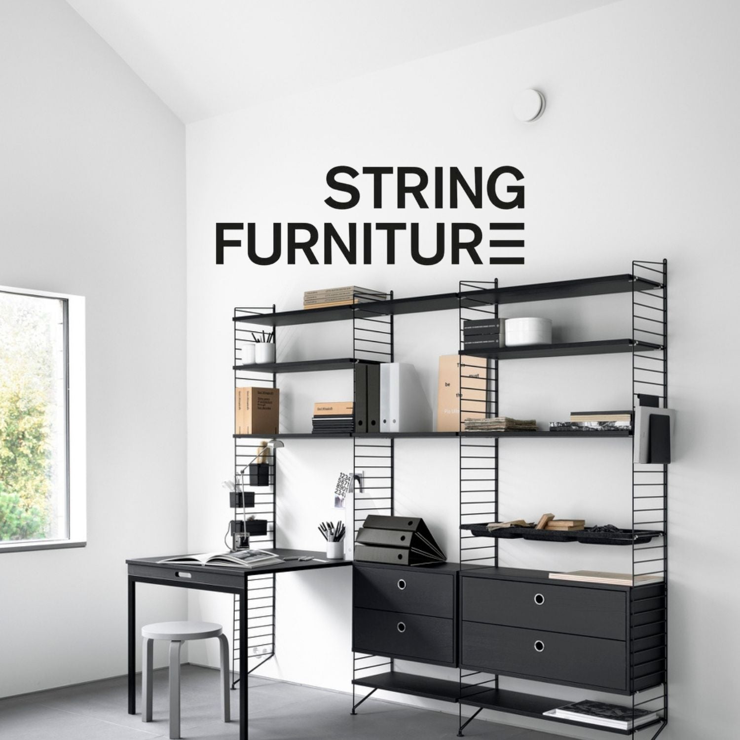 String Furniture’s modular shelving system offers endless ways to store and display things all around the home, and this particular workspace configuration is perfect for a home office. We love how there’s ample room for both hidden and visible storage, with a locking cabinet for important documents.