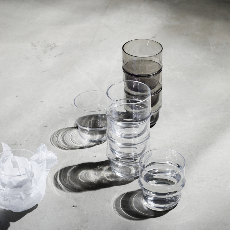 “The ridge on the Unda glass gives you a tactile feel that surpasses the visual, and the V-shape makes them easy to stack without getting stuck," explains Klennel. "The ridge also indicates the suitable fill level of the carafe.”