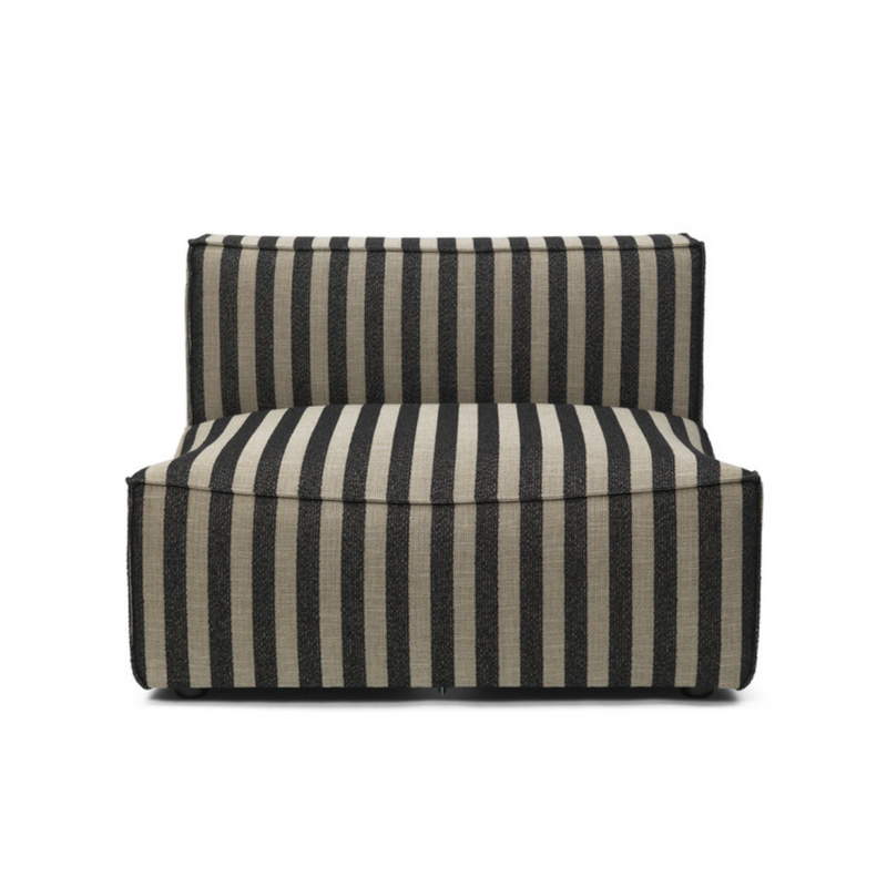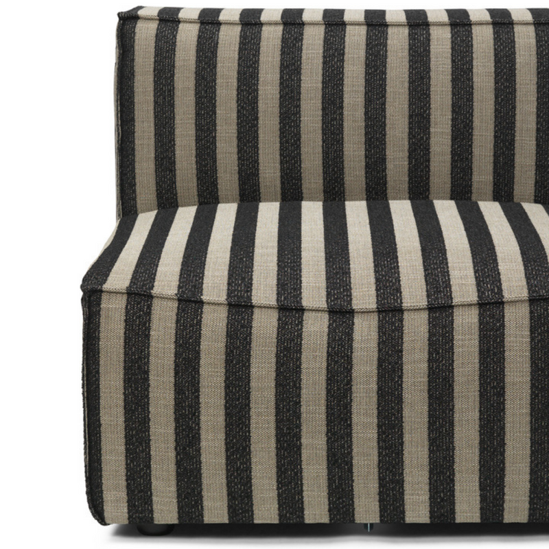 The Louisiana striped textile was designed in partnership with the Louisiana Museum of Modern Art. Inspired by the graphic lines and discreet modernism of Louisiana’s iconic architecture, the classic yet bold stripe mirrors the pervasive wooden slats and black window frames distinctive to Louisiana, as does the understated black and sand colorway, while the textured, linen-based textile intrigues your sense of touch.