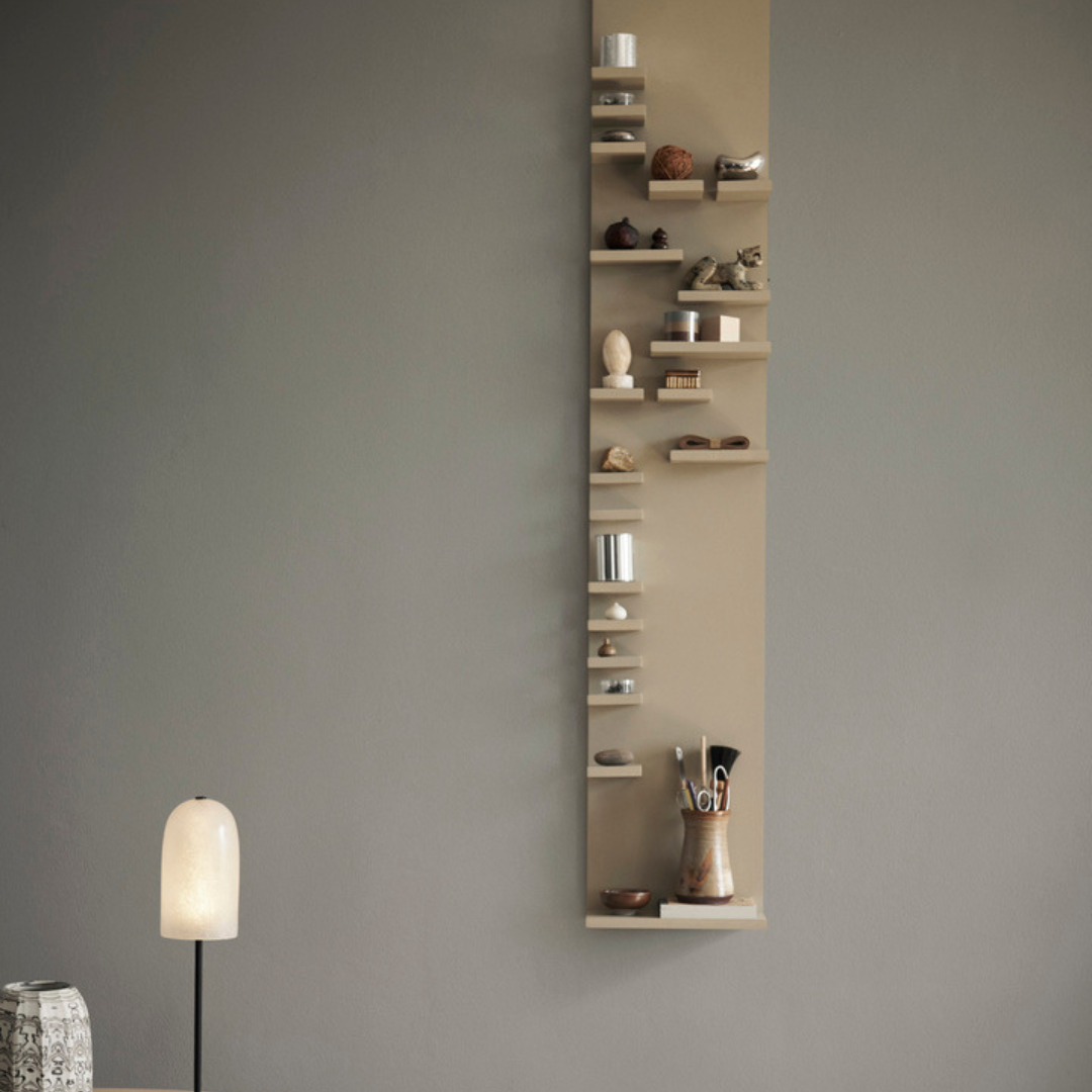 The Ferm Living Parade Shelf is inspired by sættekasser, a Danish furniture concept where traditional compartment boxes are used to display small treasures. Designed in collaboration with artist Leise Dich Abrahamsen, little shelves with varying depths provide many ways to showcase treasured items and trinkets.