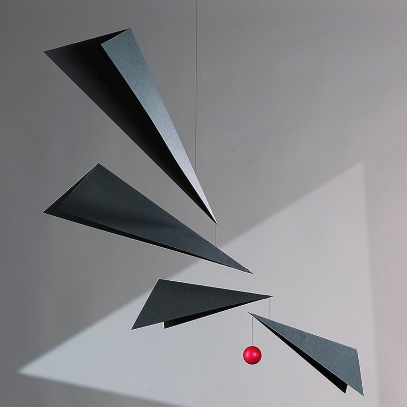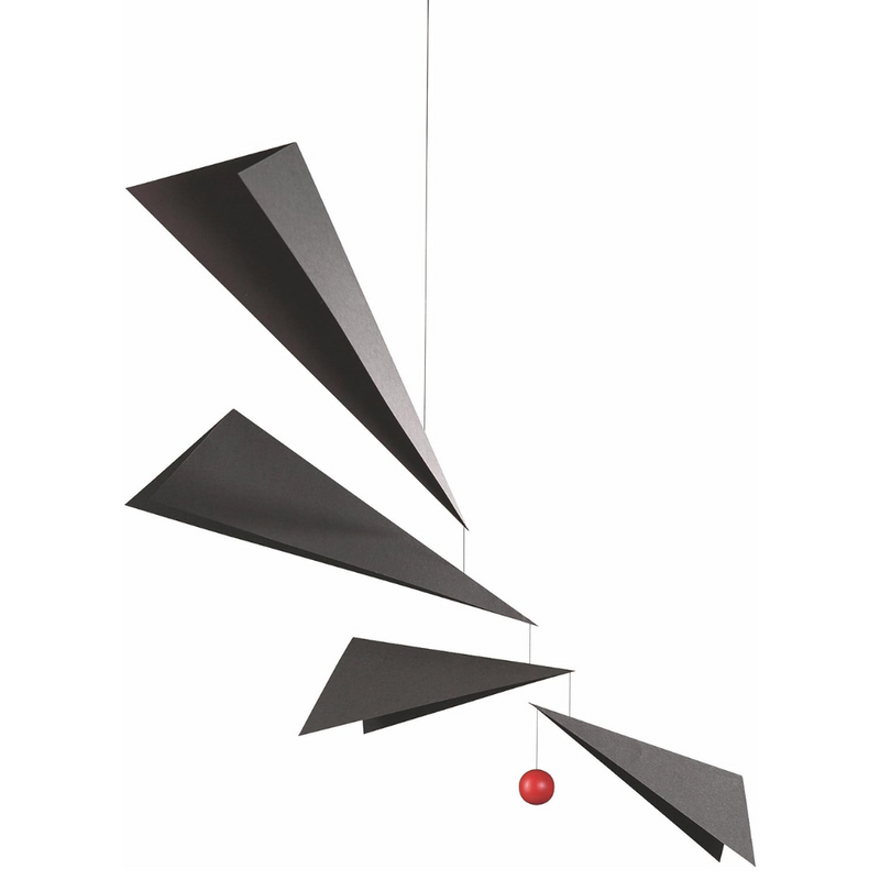 Designed by Louise B. Helmersen in 2004, the Flensted Wings Mobile features folded origami reminiscent of the wings of stealth aircraft. We love the consideration of negative space in this piece. Made by hand in Denmark with high-quality plastic.