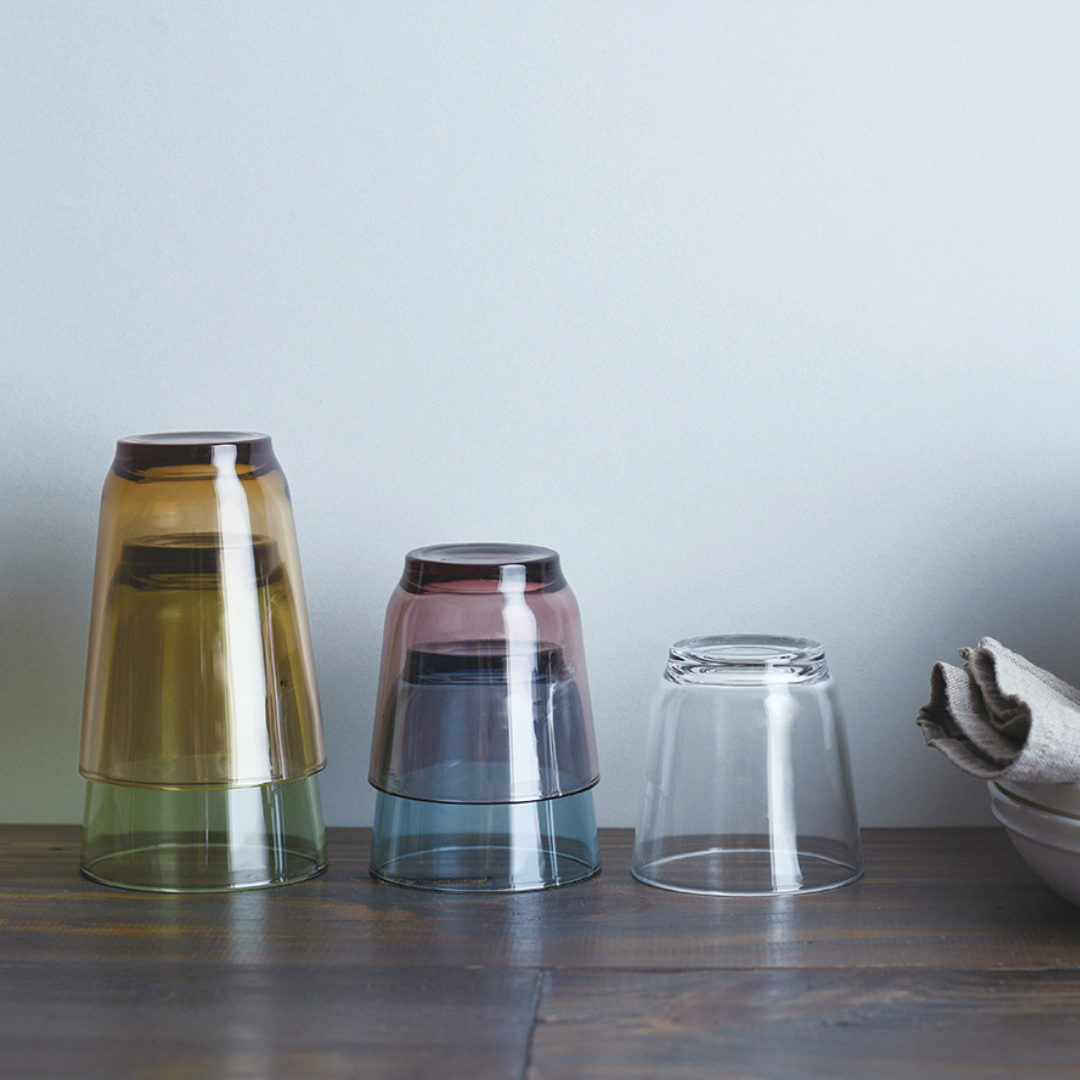 We love the classic Clear color for its undeniable clarity, but the coloured soda glass offered in Brown, Green and Purple add a great touch of color to open shelving. The HIBI Tumblers can be easily stacked for storage, and are conveniently dishwasher safe.