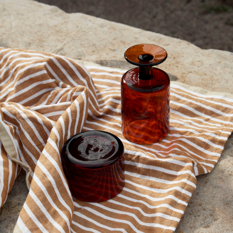 Comfortable in hand, the Ferm Living Oli Wine Glass is part of the Oli glassware series, perfect for everyday living. The distinctive, tiny bubbles are created by deliberate pockets of air left between each layer of mouth-blown glass. We love how each piece is unique in thickness and color, thanks to the recycled material and intricate glass-blowing process.