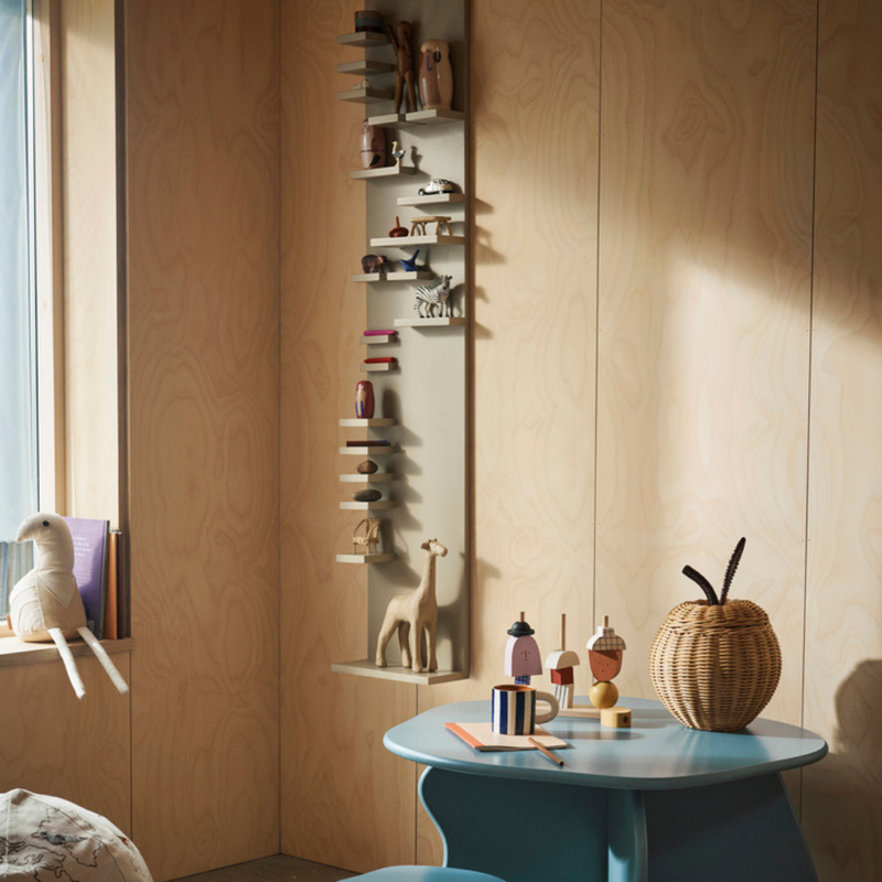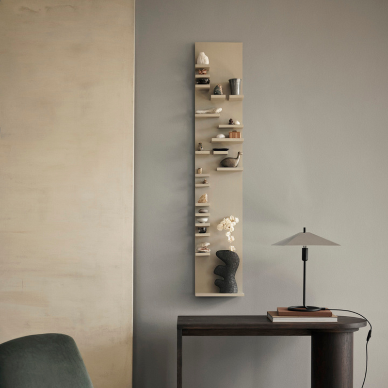 The Ferm Living Parade Shelf is inspired by sættekasser, a Danish furniture concept where traditional compartment boxes are used to display small treasures. Designed in collaboration with artist Leise Dich Abrahamsen, little shelves with varying depths provide many ways to showcase treasured items and trinkets.