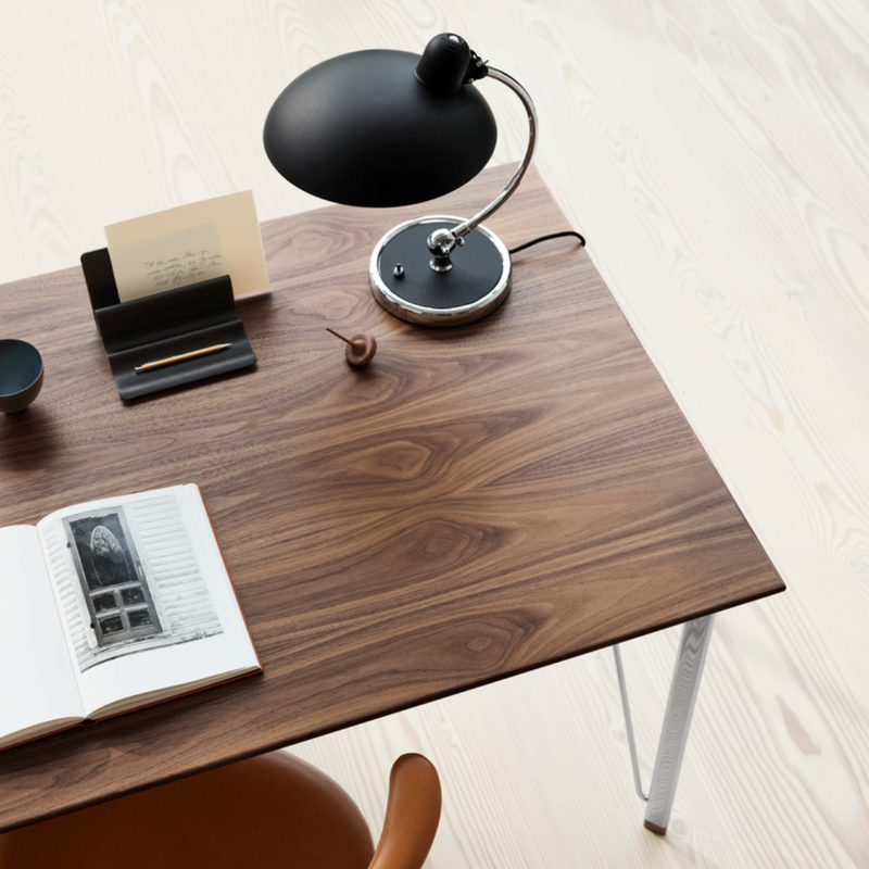 The Fritz Hansen Kaiser Idell Table Lamp - Luxus s is characterized by Christian Dell’s ability to create an elegant design with basic geometric hallmarks of modernism: shapes like the sphere, circle, and cylinder. With the use of steel and brass, Kaiser Idell lighting is seen as a symbol of the Bauhaus design movement. The patented swivel joint and characteristic dome are what make this timeless design classic standout.