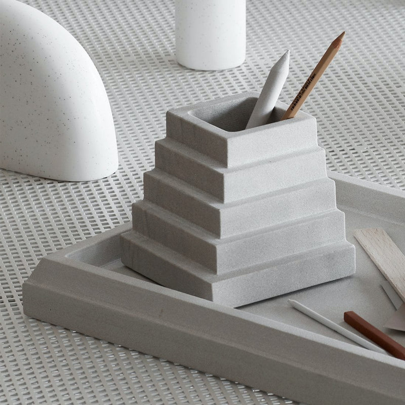 Made from a Smooth Sandstone with a light grey finish, these small storage solutions were inspired by age old architecture.