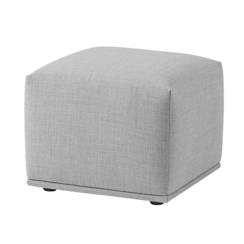 The MUUTO Echo Pouf has a wooden frame and feet, and is composed of high-resilience foam with textile upholstery.