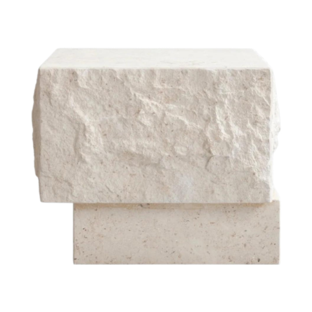 Temple Coffee Table, Low - Chrome/Limestone