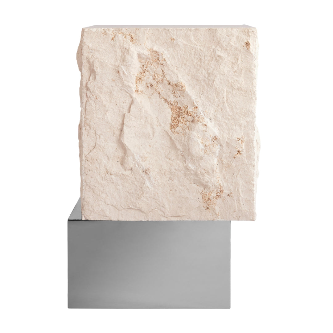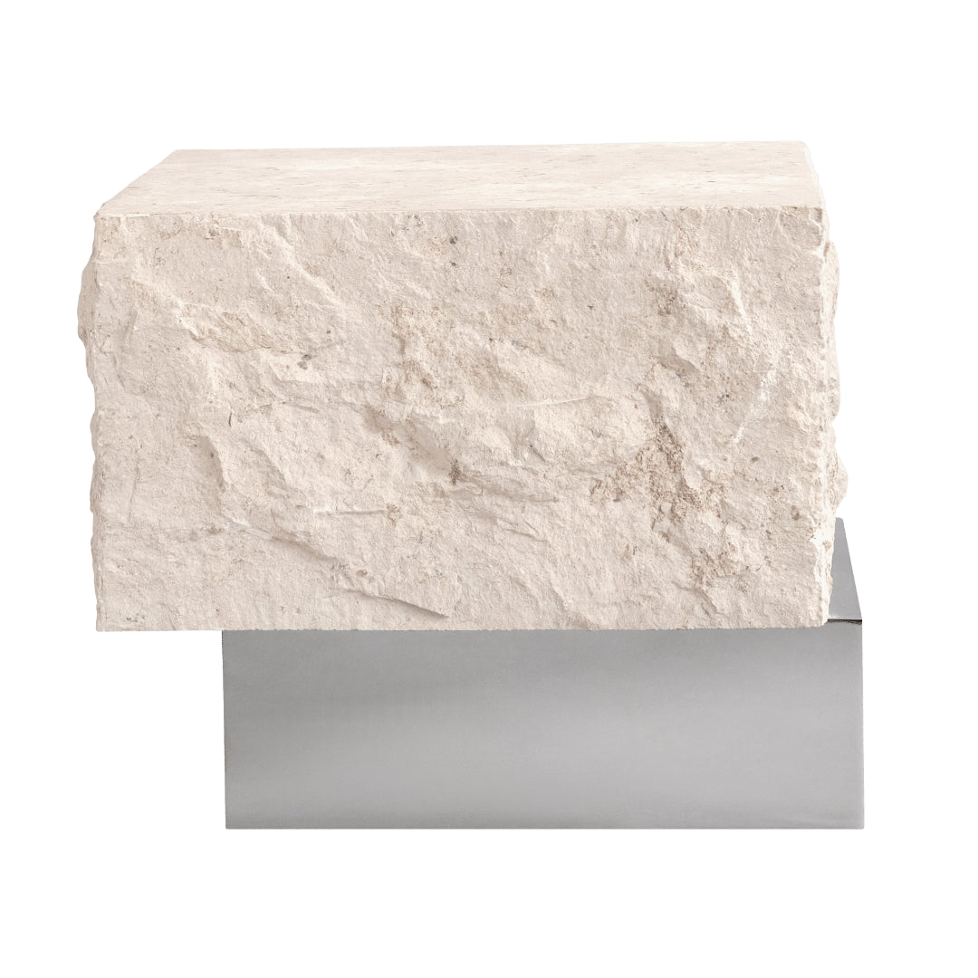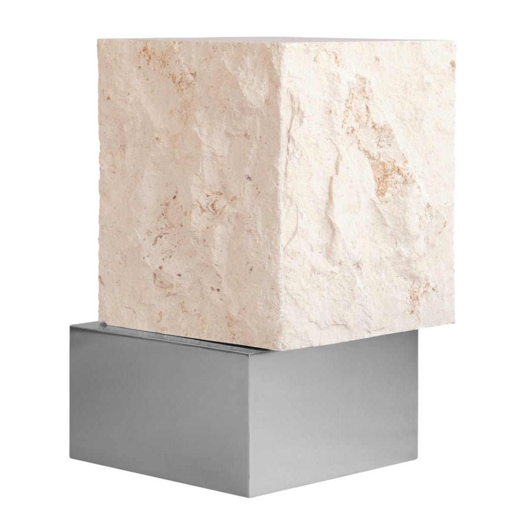 Temple Coffee Table, Tall - Chrome/Limestone