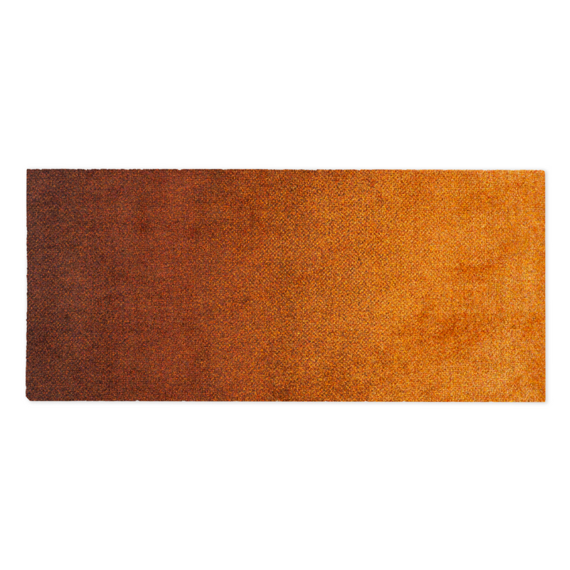 The Dis Floor Mat in Rust is inspired by the warm shades found in sand, mineral, and rock formations, from deep red to pale orange tones.