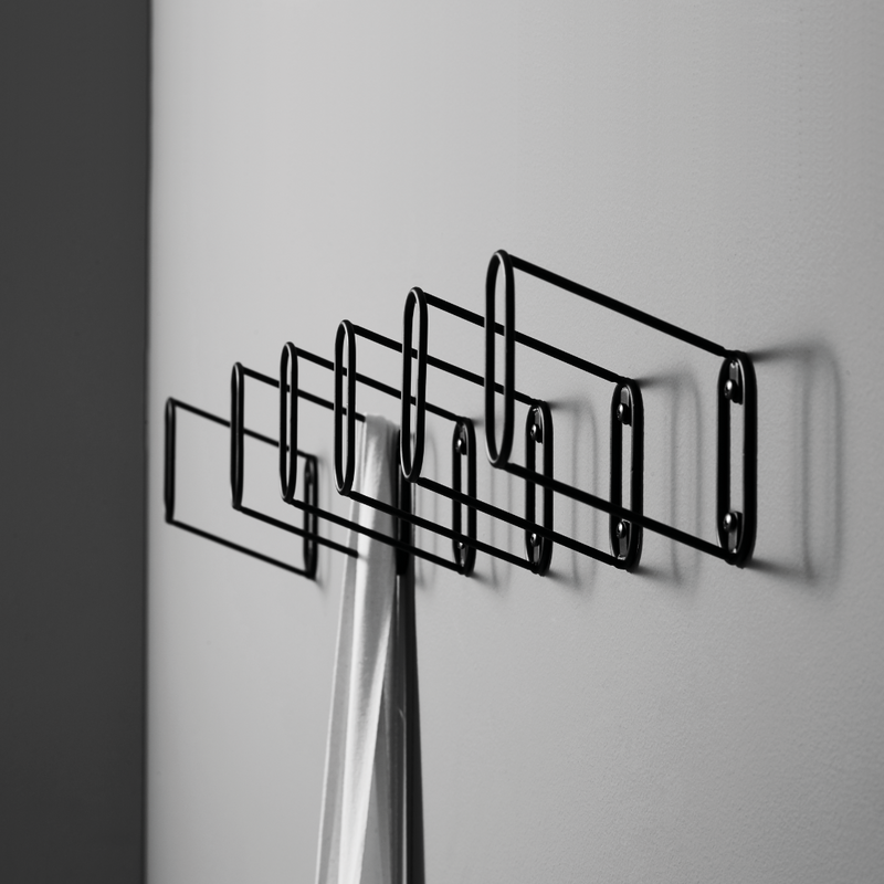Named after Eileen Gray, the Eileen hook is a homage to the great pioneer of the modern movement in architecture. The hook is designed to create a visual effect as the viewer perceives a body even though only the outlines are visible. Place several hooks together to hang clothes directly on the hook, or add hangers for additional storage.