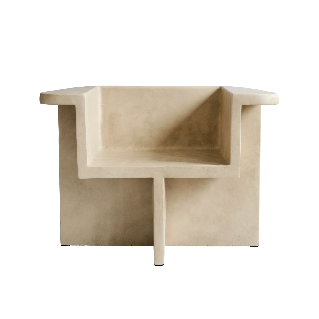 Part of the Brutus collection, the Brutus Lounge Chair is inspired by the architectural Brutalism movement of the mid-20th century. Each style is designed as a simplified block-like structure, which reminisces architectural building components of concrete. The Brutus Lounge Chair comes in Coffee, Bone White, Sand, and Dark Grey.