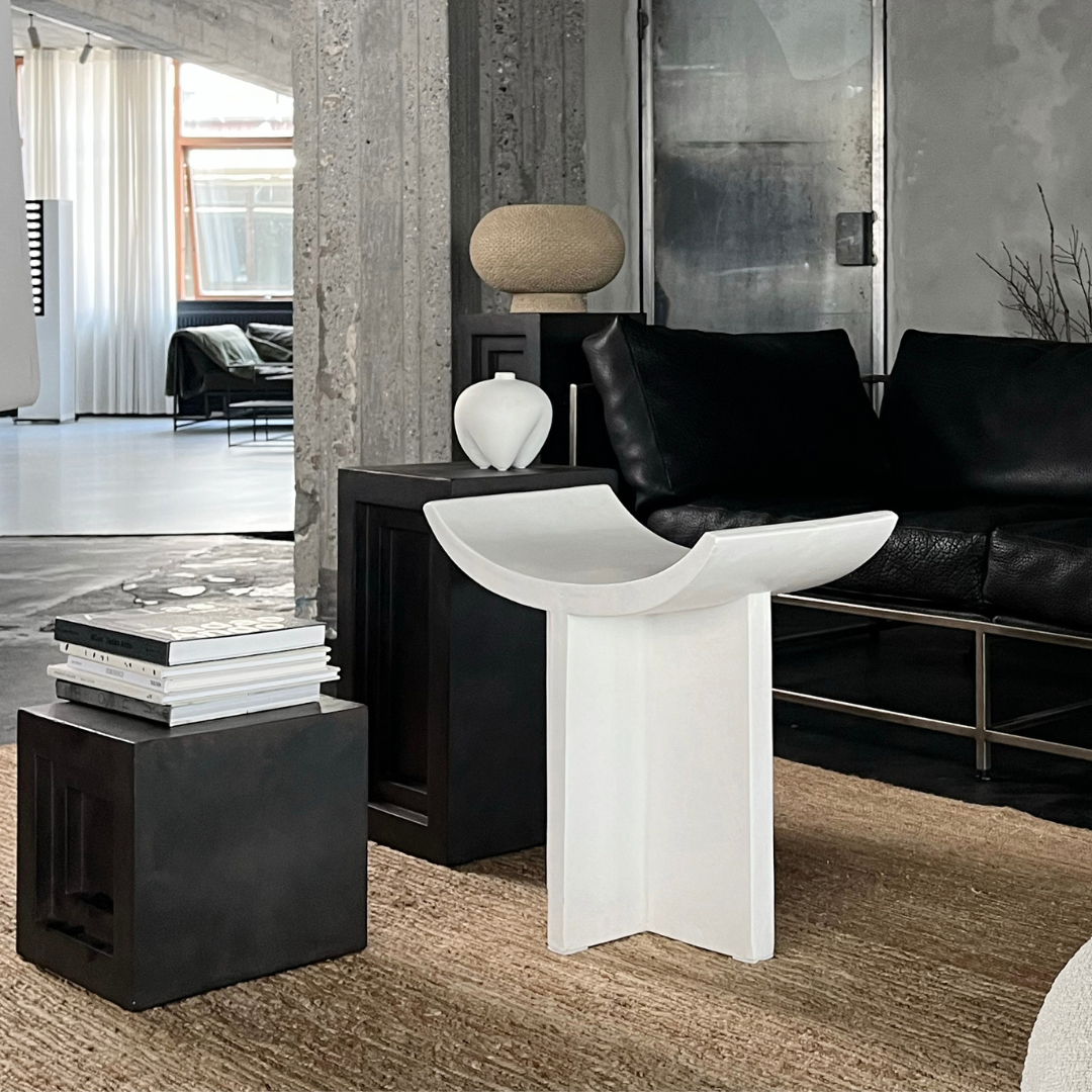 Part of the Brutus collection, the Brutus Stool is inspired by the architectural Brutalism movement of the mid-20th century. Each style is designed as a simplified block-like structure, which reminisces architectural building components of concrete. The Brutus Stool comes in Coffee and Bone White.