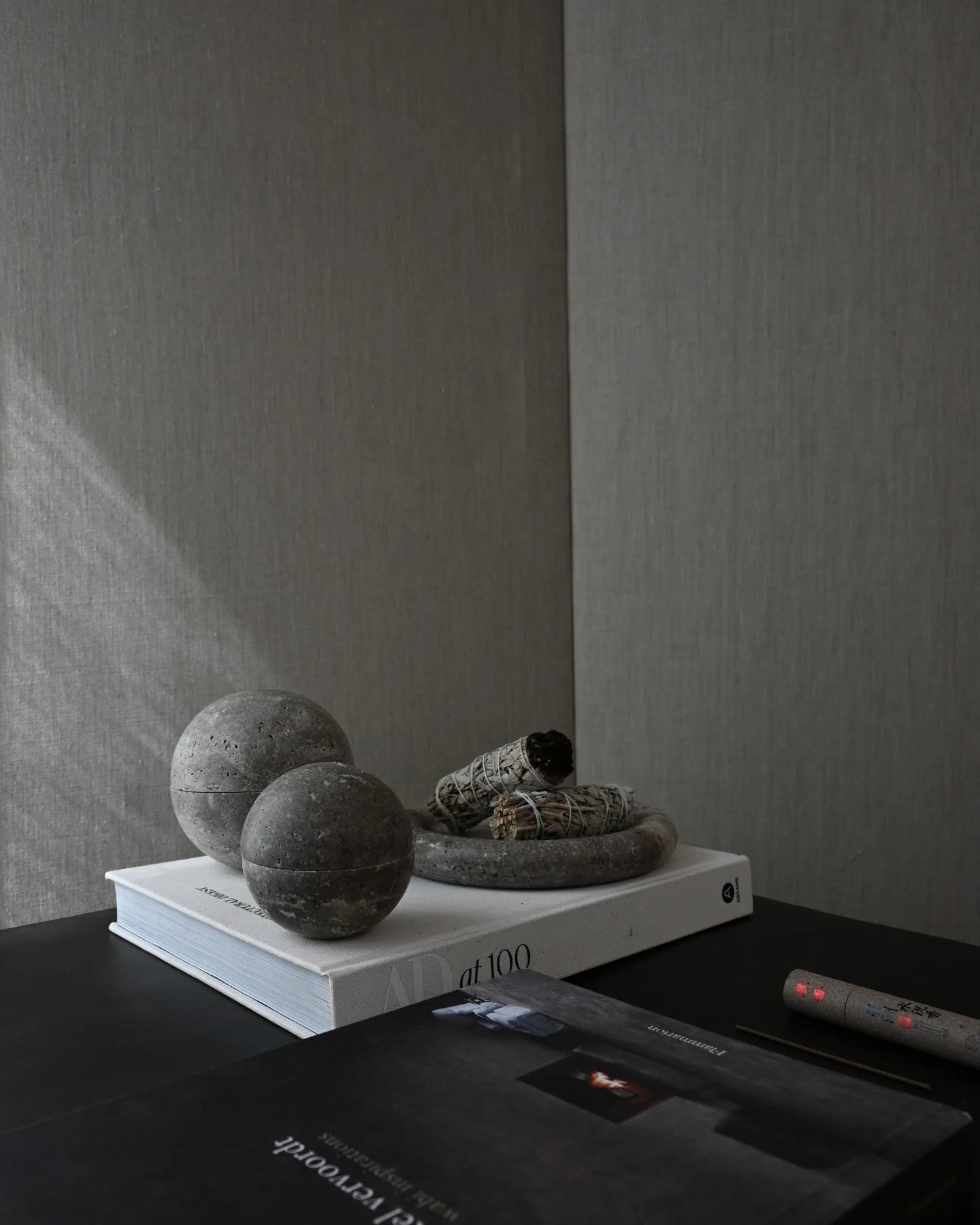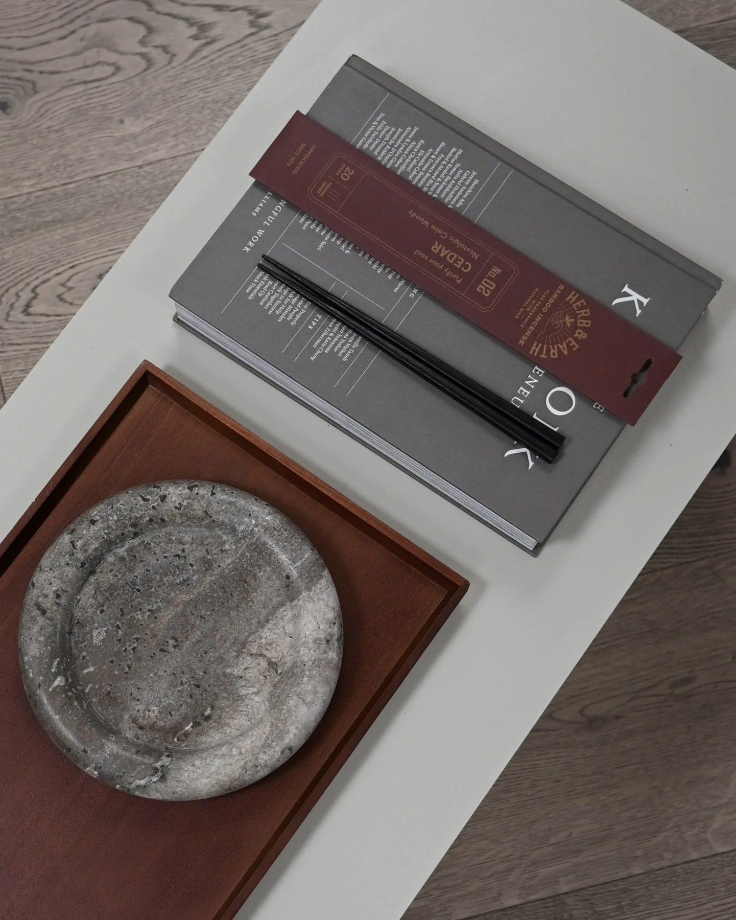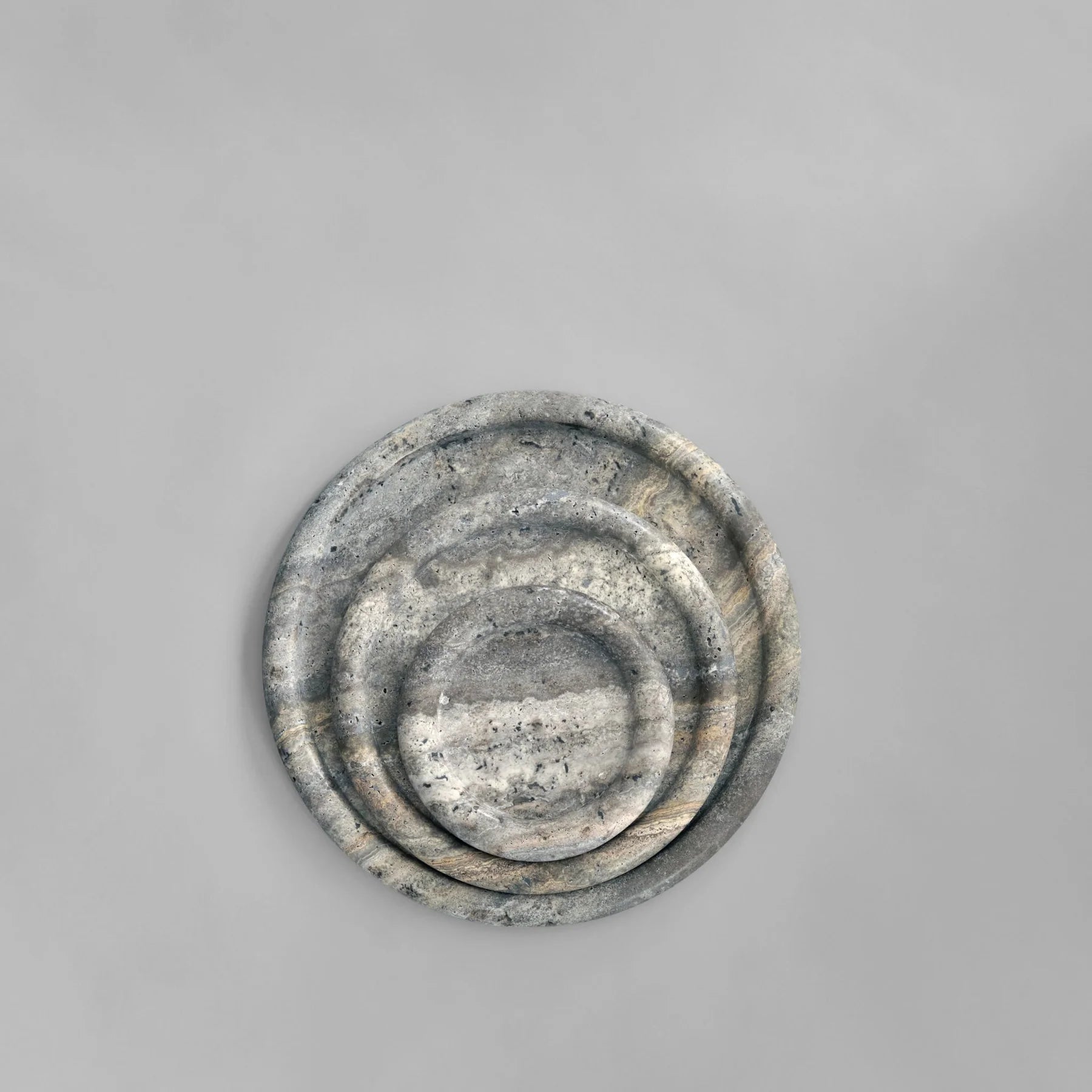 The 101 Copenhagen Enkei Tray Round combines the beauty of Silver Travertine with sleek, minimalist design. The Enkei collection features stone objects crafted from exquisite Silver Travertine, including jars and trays in various sizes and shapes. The blend of geometric designs and the natural patterns of the travertine creates a striking balance between minimalist style and the unique textures of each stone, ensuring that every piece is one-of-a-kind.