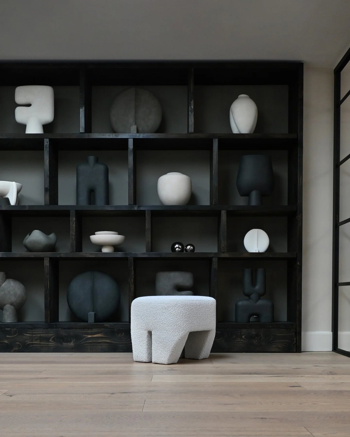 The 101 Copenhagen Sculpt Stool in Off-White draws inspiration from the Brutalist architecture movement of the 1950s. Reflecting the raw, block-like structures of concrete buildings. For a softer, more inviting touch, the Sculpt Stool is also available in luxurious off-white Bouclé, offering a cozy contrast to its bold, structured form.