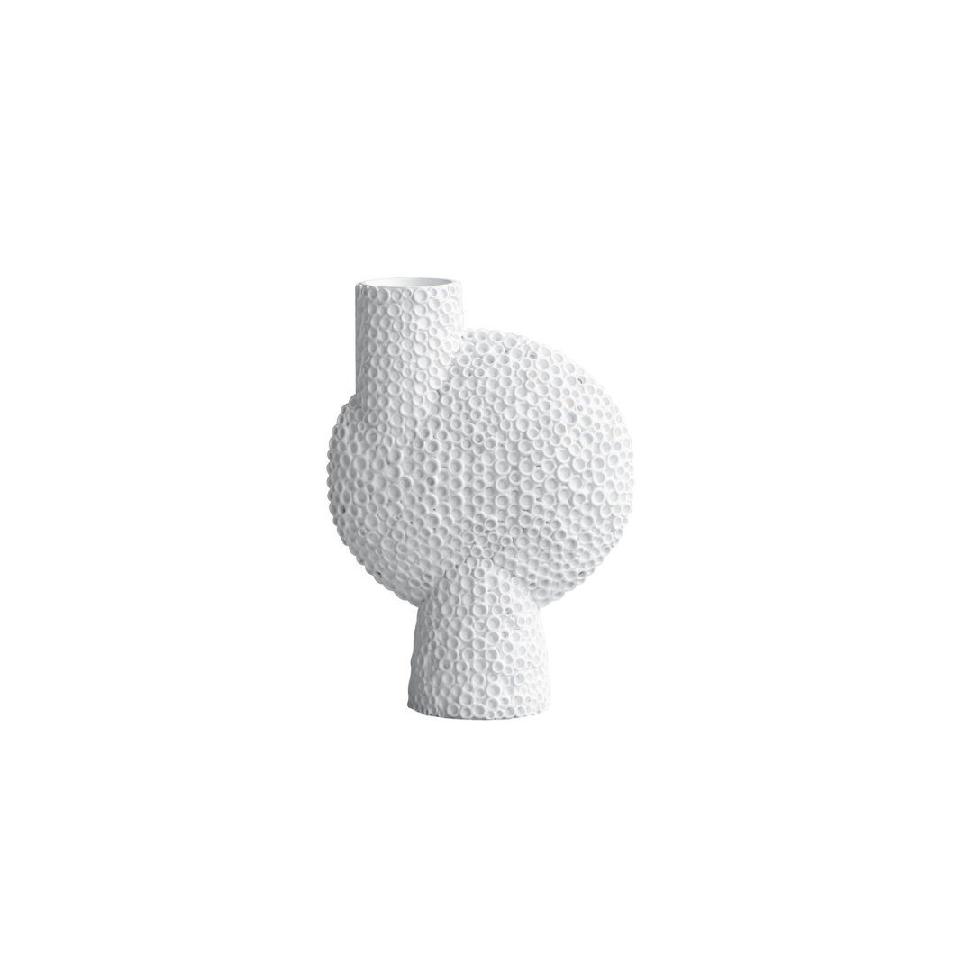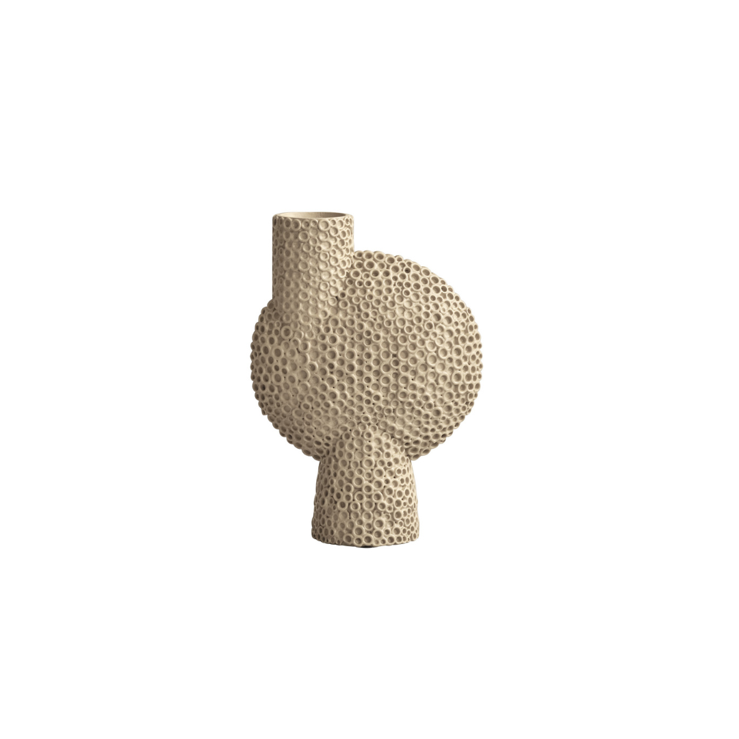 Meet the Sphere Vase Bubl in Shisen. The 101 Copenhagen Sphere Vase series is synonymous with the visual language found across all 101 Copenhagen pieces, featuring a family of unique silhouettes and textures. Each vase is finished with intricate ornate detailing within a faded earth-tone color palette. 101 Copenhagen collaborated closely with highly skilled ceramicists to ensure a precise contrast between the smooth shape and sharp edges.