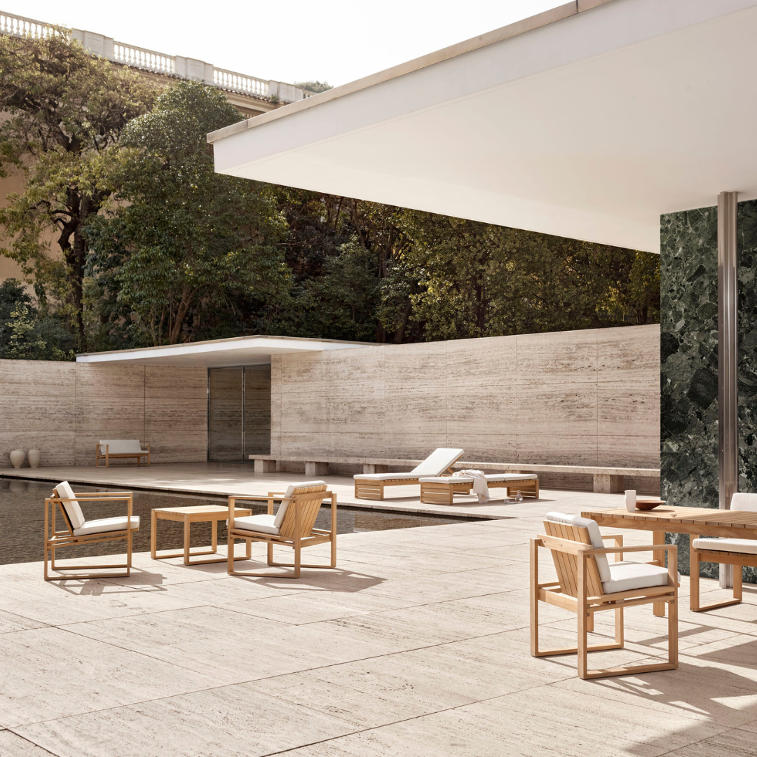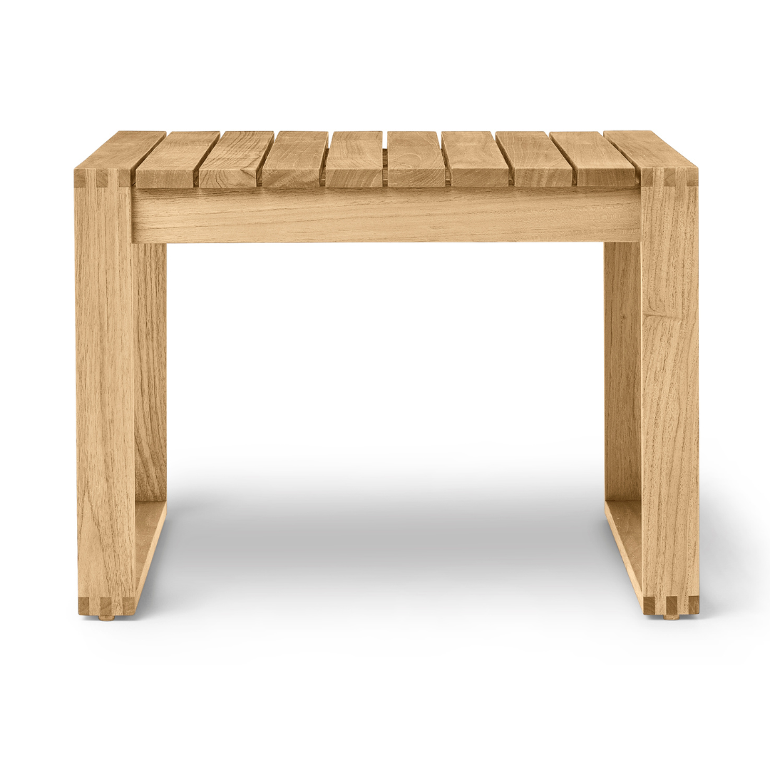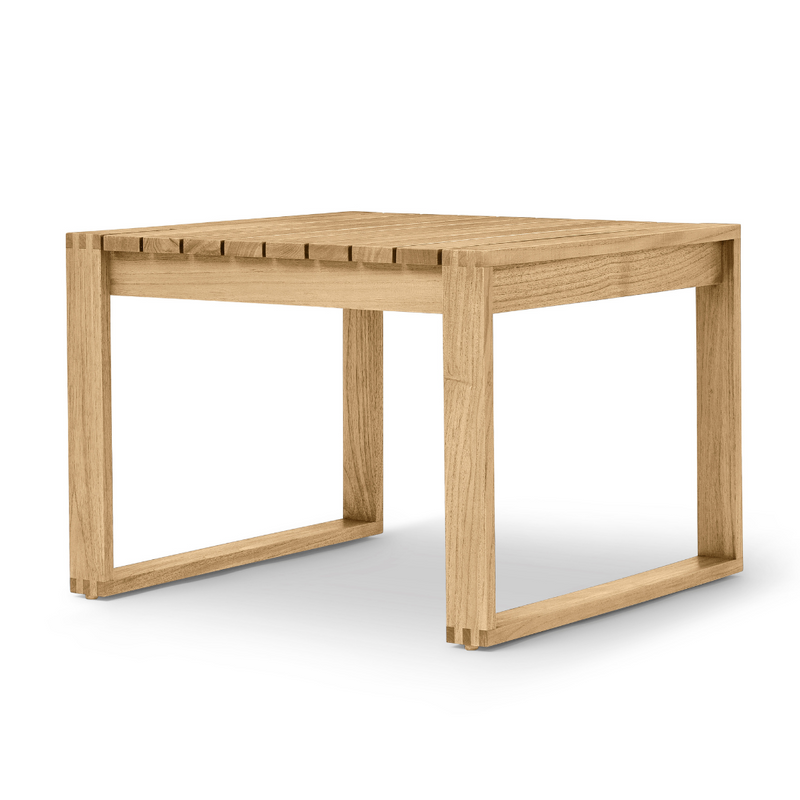 The Carl Hansen & Søn BK16 Outdoor/Indoor Side Table was designed in 1959 by Danish architect Bodil Kjær. Her architecturally inspired outdoor/indoor series features linear forms influenced by Cubism. The solid teak construction is designed to patinate beautifully with age and use.