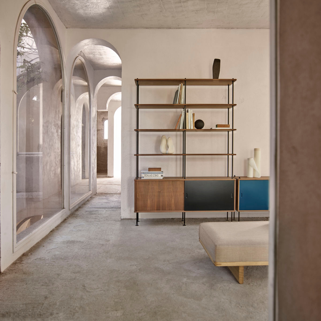 The modular BM0253 Shelving System in Configuration 1 was originally designed by Børge Mogensen in 1953. Minimalist and modular, the tubular steel FSC™-certified wood design comes in a range of colorful finishes to bring personality to spaces. The shelving system is part of Børge Mogensen’s ‘building furniture’ concept of timeless designs that adapt to changing needs and spaces. The flexible shelving system optimizes both floor space and display areas, providing shelving and cupboards for both show and storage. A fusion of aesthetics, function, and craftsmanship, it profiles all the hallmarks of great, lasting design.