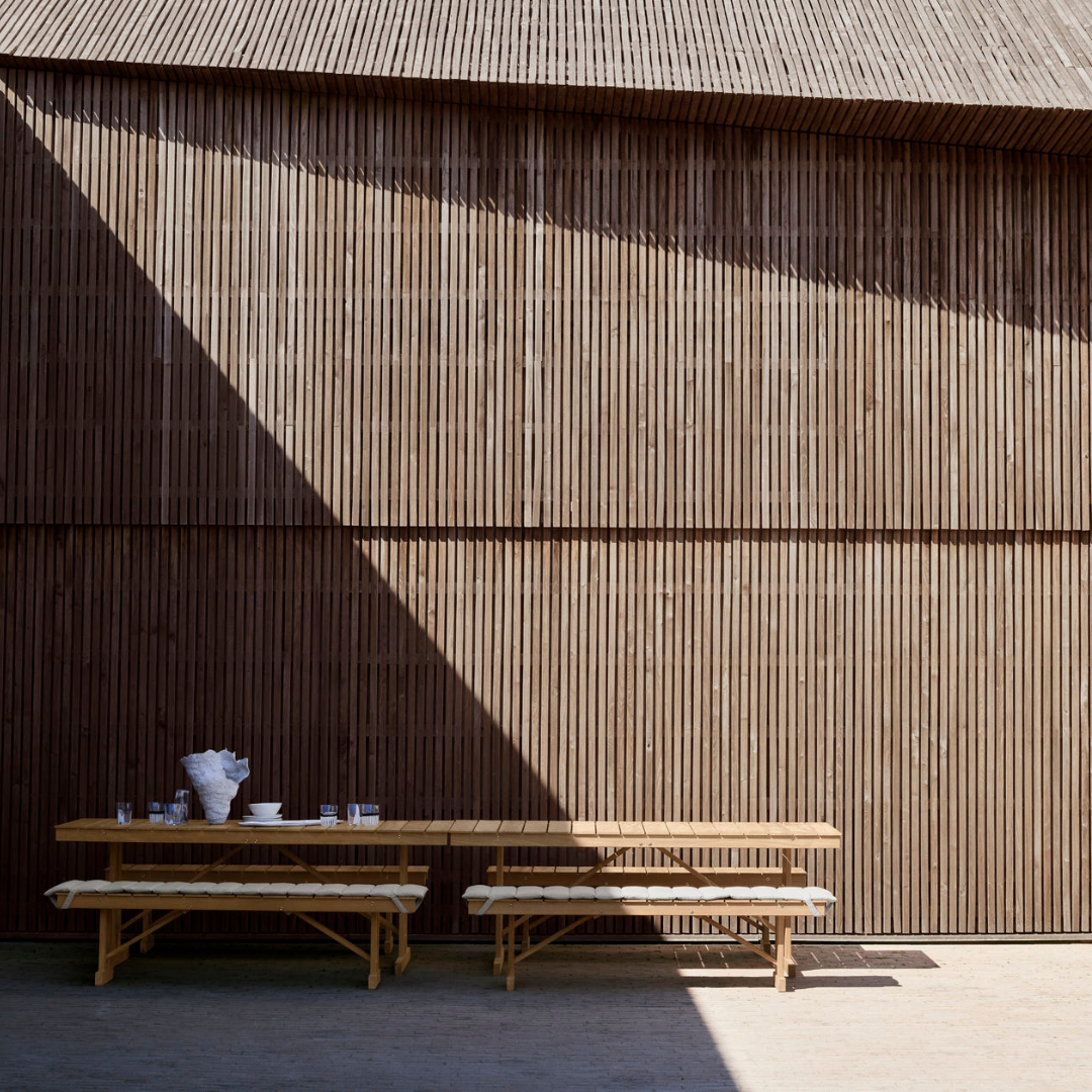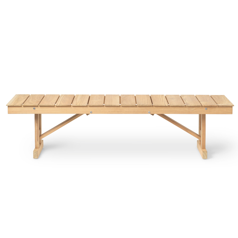 The Carl Hansen & Søn BM1871 Outdoor Bench draws inspiration from the clean lines and functional details found in Shaker furniture. First designed by Børge Mogensen in 1971, Carl Hansen & Søn rediscovered his designs and reworked them for modern needs while remaining true to the original concept. Set on a sturdy but elegant wooden frame, graphic slats provide a durable and decorative seat perfect for impromptu outdoor gatherings. Crafted in untreated FSC™-certified teak, the durable design withstands wear and weather conditions to age gracefully over time, acquiring an elegant silver-grey hue.