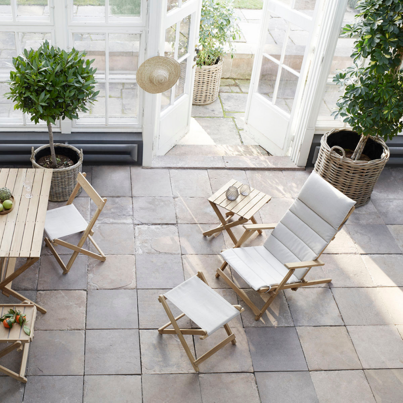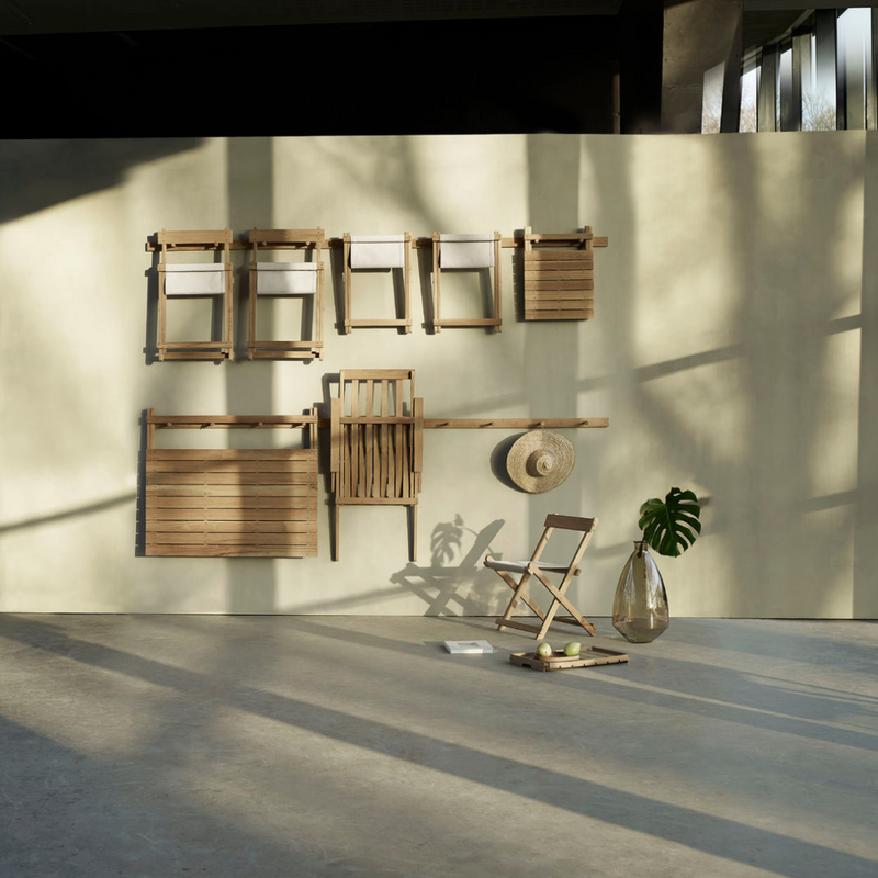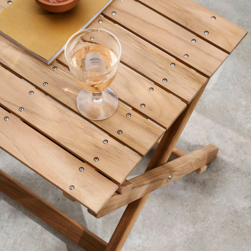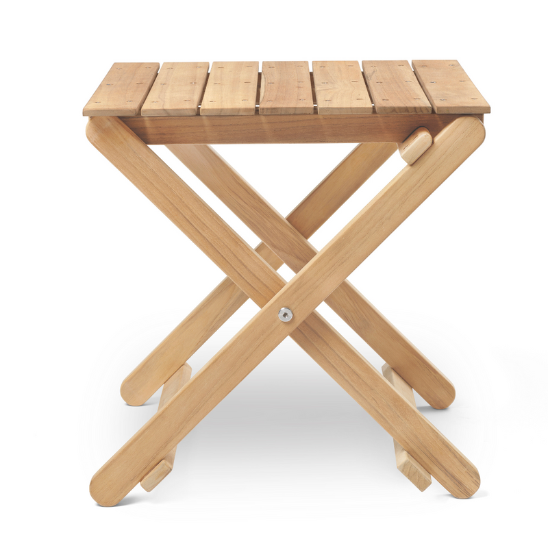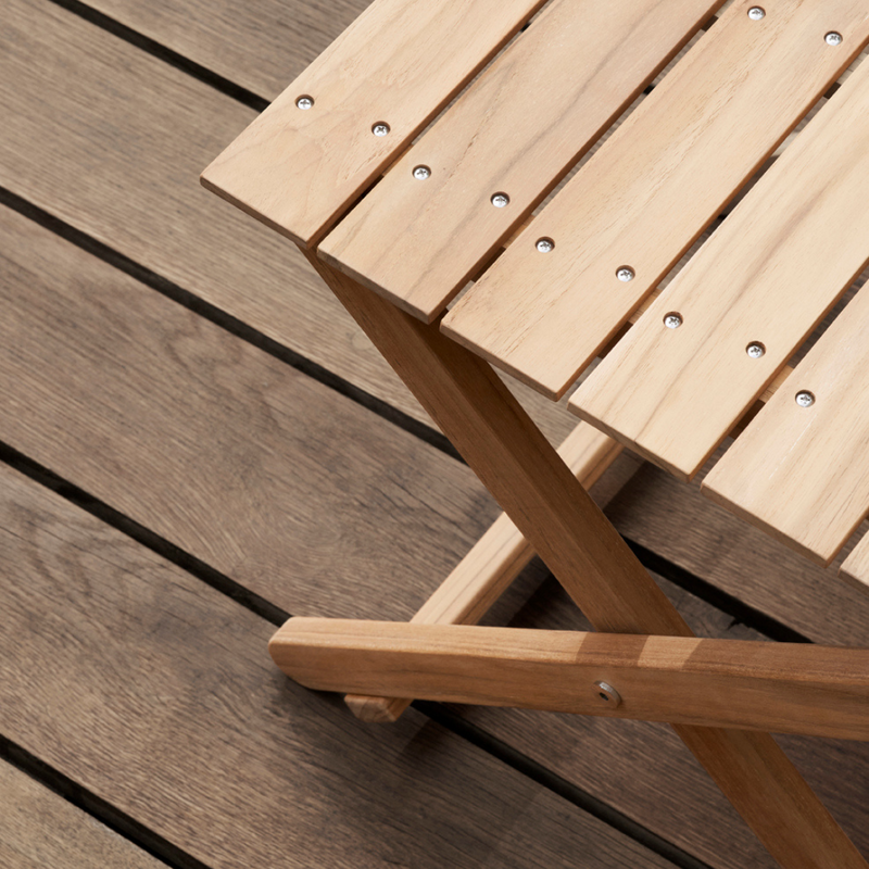 The Carl Hansen & Søn BM5868 Outdoor Side Table draws inspiration from 19th-century English furniture, American Shakers, and traditional cabinetmaking processes. Designer Børge Mogensen originally designed this series for his own balcony in the late 1960s. He wanted to design pieces that could be folded flat and stored away or hung on the wall as a decorative element when not in use. The result is a series of outdoor furniture that is comfortable, functional, space-saving, and made with quality untreated Teak wood.