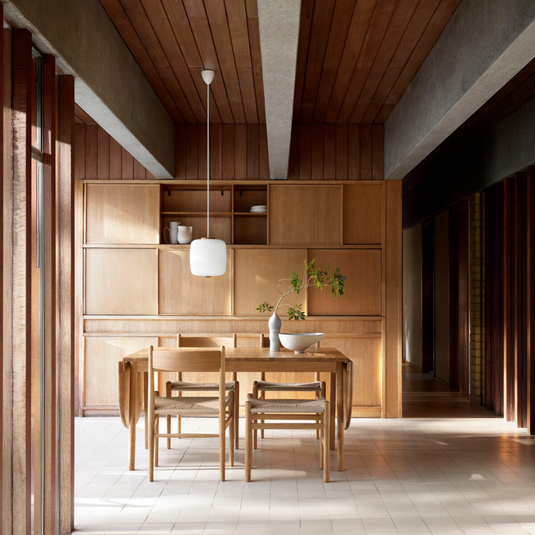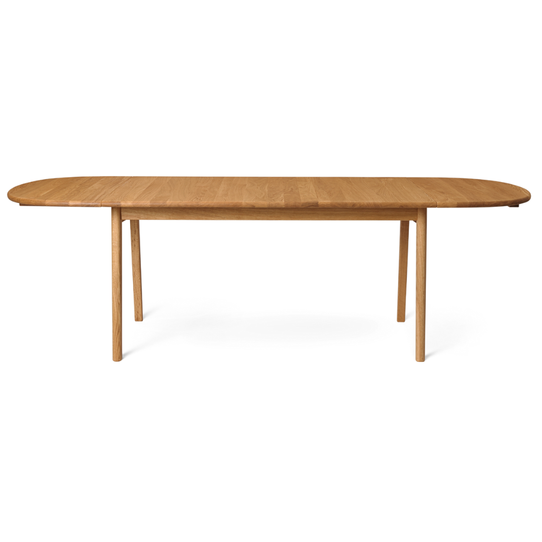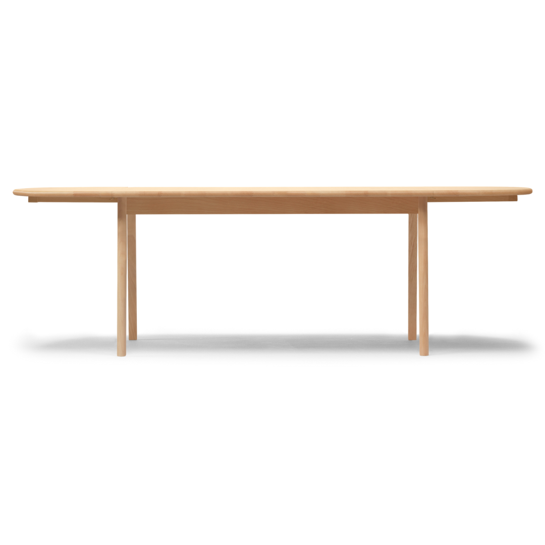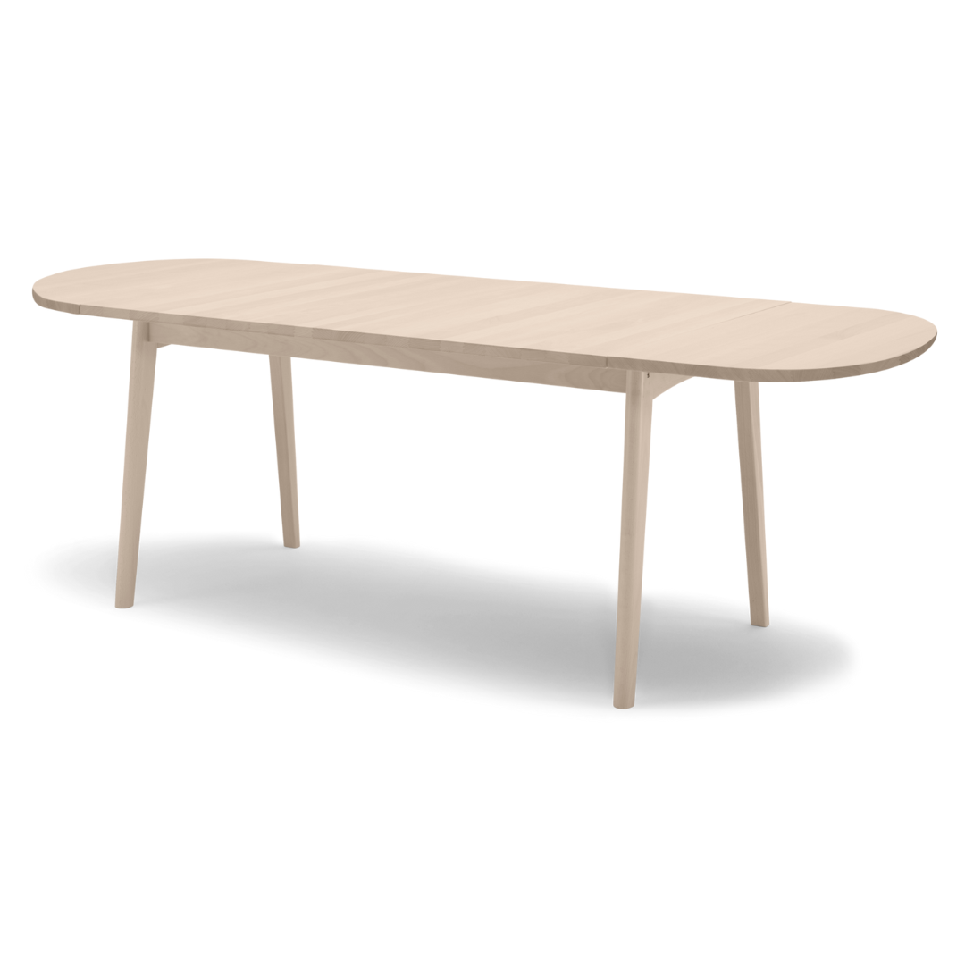 The CH006 Dining Table highlights Hans J. Wegner’s exceptional attention to detail and focus on functionality. The CH006 is ideal for smaller as well as more spacious settings with its clean, intelligent design. The table comes equipped with hinged leaves at both ends that lift easily to accommodate extra guests. The solid wood design in beech or oak pairs elegantly with all of Wegner’s dining chairs, taking on a different and individual expression depending on the chair, wood type, and finish chosen.