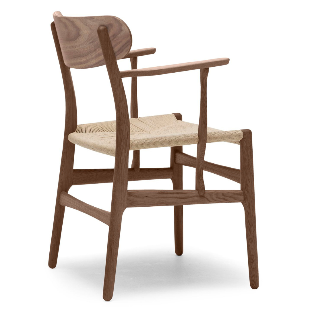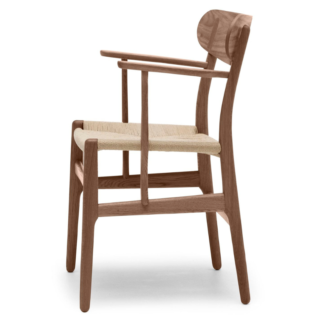 The Carl Hansen & Søn CH26 Armchair was designed in 1950 by Hans J. Wegner alongside a series of iconic chairs. It remained as a sketch for years until Carl Hansen later brought it to life. The CH26 Armchair closely resembles the lounge version with its organic shapes, refined back, and hand-woven seat, and features proportions ideal for longer periods of sitting at a dining table or a desk.