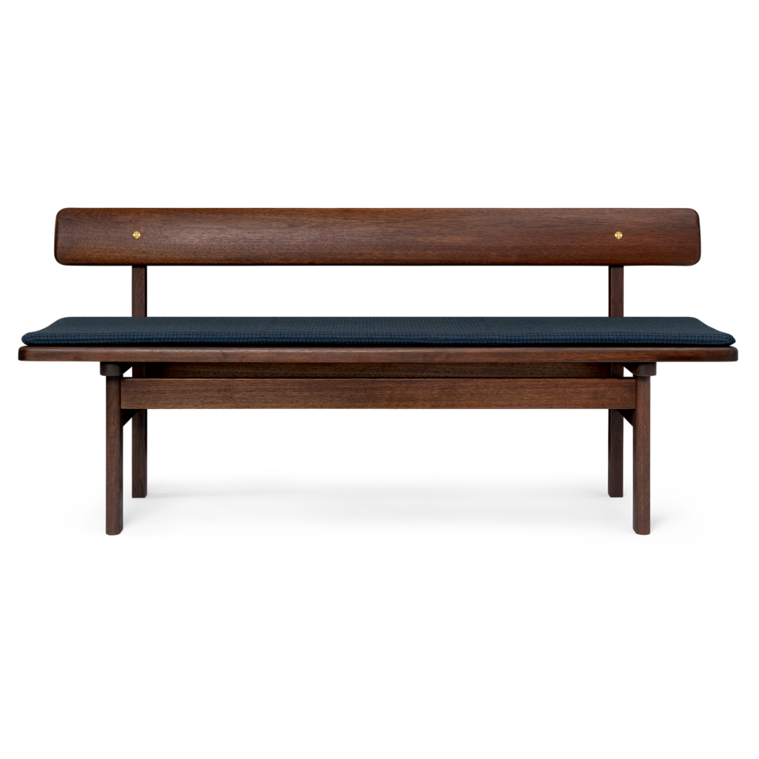 Optional cushion for the BM0699 Asserbo Bench, part of Børge Mogensen’s Asserbo Series, featuring a table and benches made of solid, dark-oiled eucalyptus.