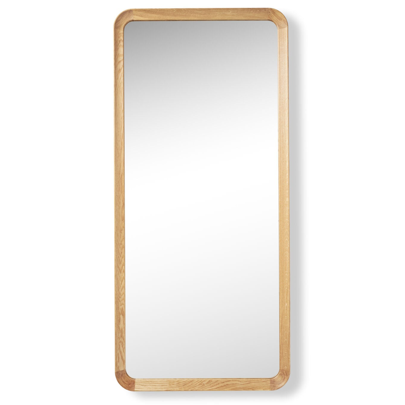 The Carl Hansen & Søn Radio House Mirror, designed by Vilhelm Lauritzen in 1945 exclusively for the Royal Retiring Room at the Radio House in Copenhagen, is now being released by Carl Hansen & Son in collaboration with Vilhelm Lauritzen Architects. The Radio House, which today is home to the Royal Danish Academy of Music, originally housed this unique mirror. For the first time, the mirror is being made available to the public. It retains the distinctive Vilhelm Lauritzen and Radio House style, featuring a beautifully organic, solid oak frame. Relaunched in its original size, this 69" full-length mirror can be hung vertically or horizontally on the wall. It is suitable for private homes and public spaces such as theaters, hotels, shops, and retail areas. Crafted from FSC-certified oiled oak, it offers a contemporary aesthetic.