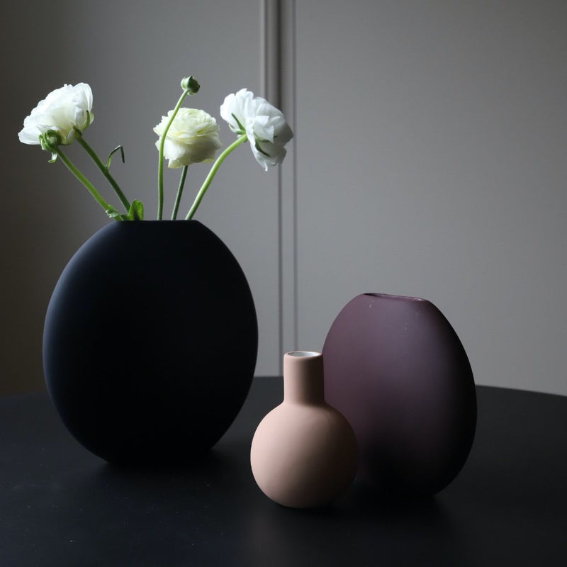 Meet the Pastille Vase Black 20cm. Available in a variety of colors and sizes, the Cooee Pastille Vase is a wonderful addition to any minimal interior and can be used in groups or as a single design object.