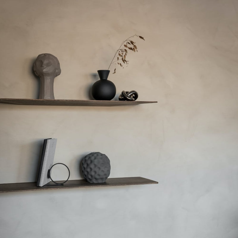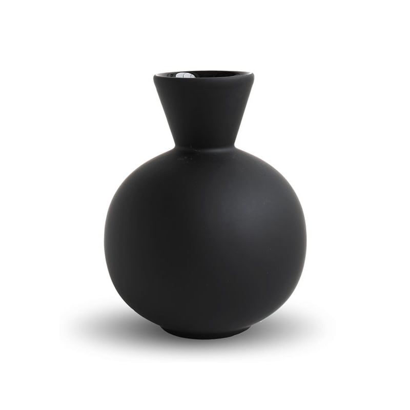 The Cooee Design Trumpet Vase 16cm Black features a round bottom and an intriguing, trumpet-like neck. Its minimal design and lovely matte, soft finish is signature of Cooee vases.