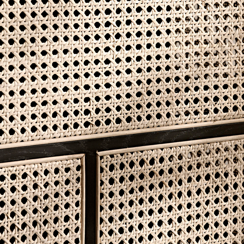 The Air Collection by Mathieu Gustafssonis an ode to rattan, a furniture material that allows for a light and semi-transparent look. Use the sideboard as a standalone piece of furniture at home, featuring access holes to easily wire lamps, appliances, and other media devices.