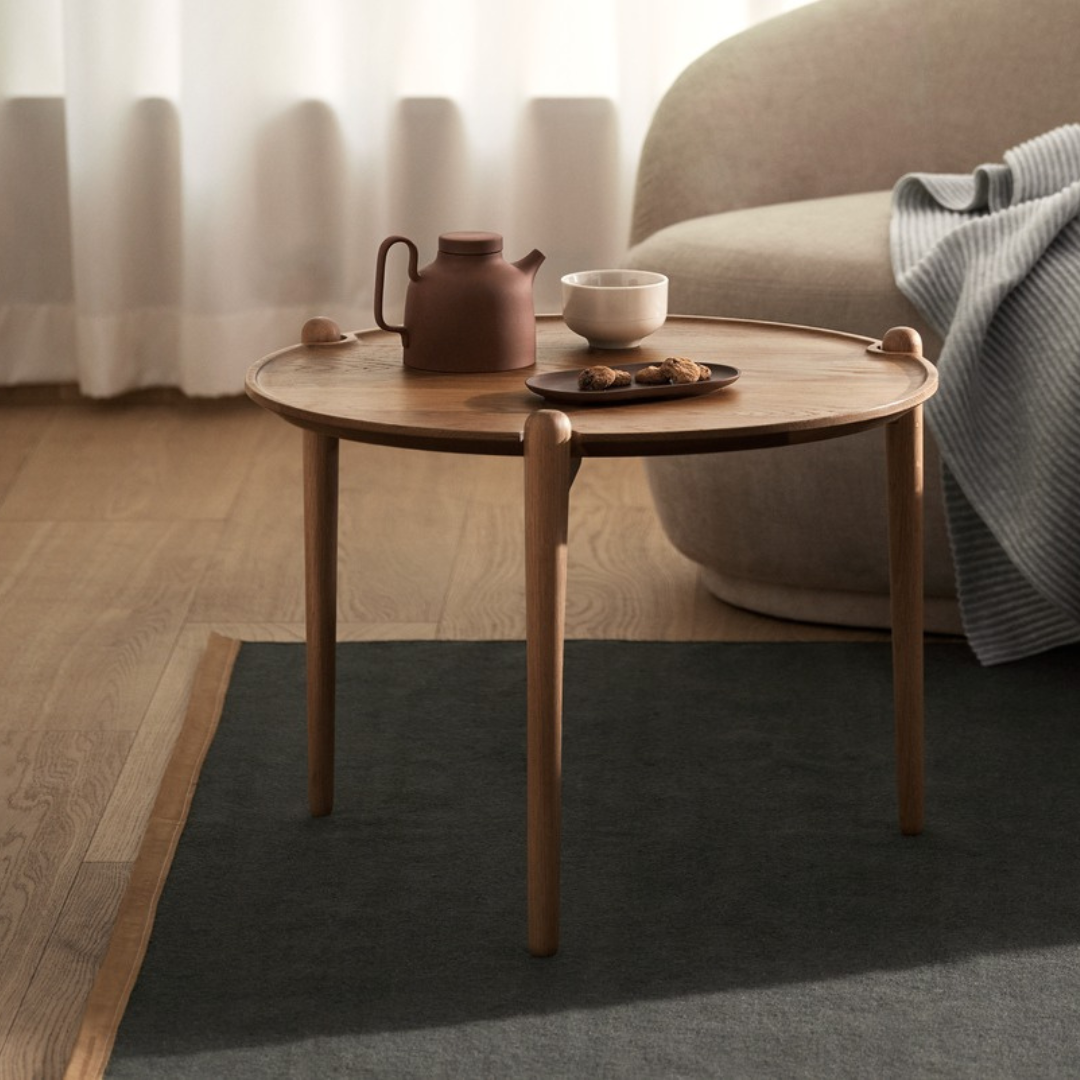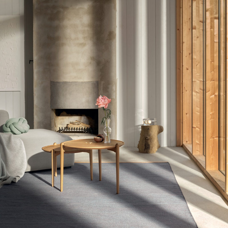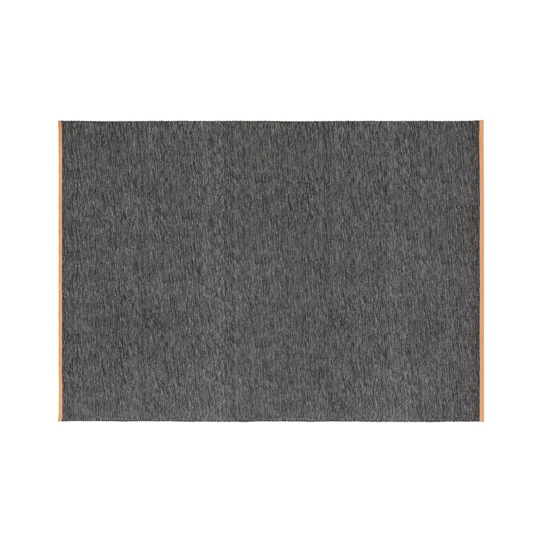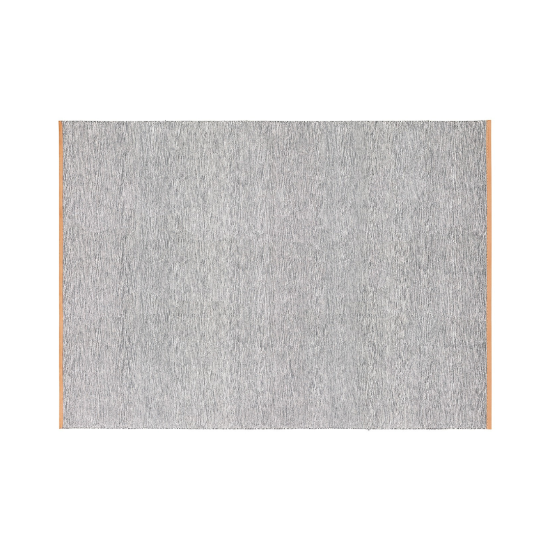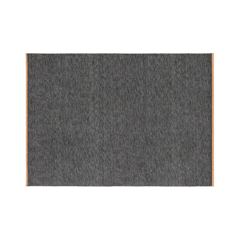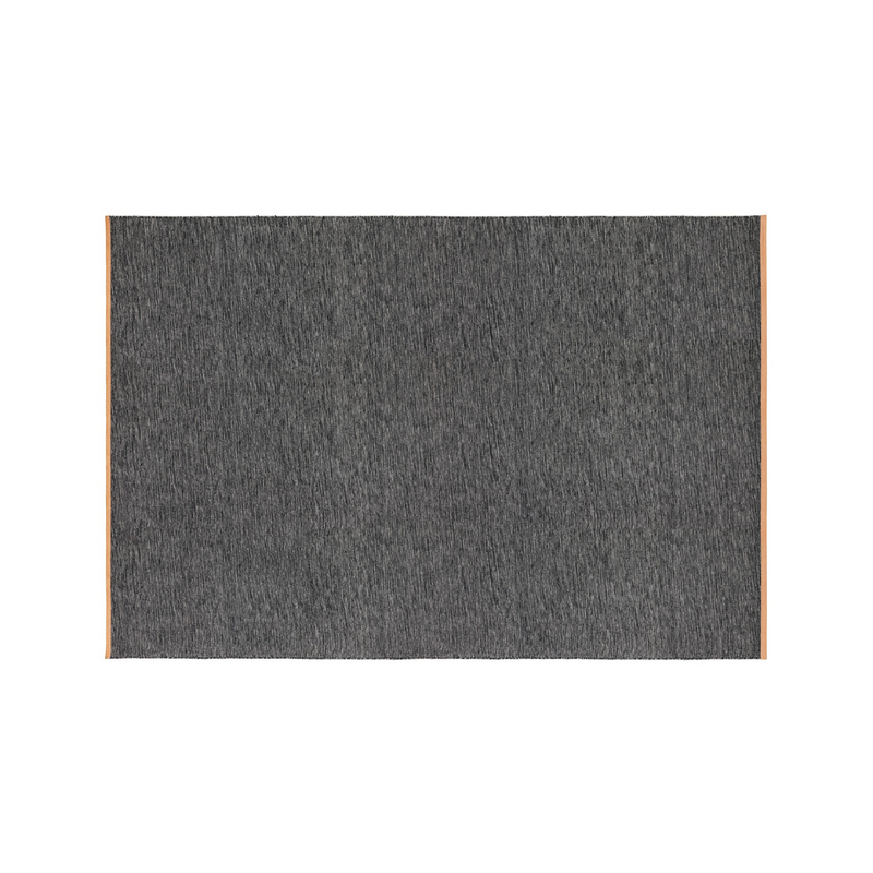 Meet the Björk Rug. The Björk collection is based on a weft in wool contrasted with leather details. Wool is both soft and resistant to soiling thanks to its natural oils. The woven pattern is inspired by the black and white trunk of the birch tree (which in Swedish is Björk). The marbled effect is made by intertwining different colored wool yarns in the weft.