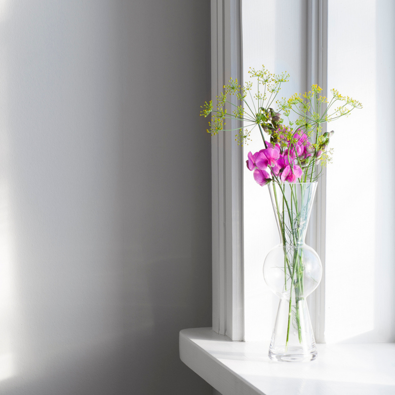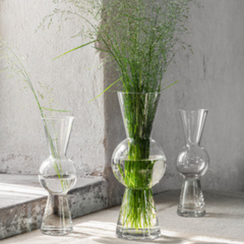 Designer Eva Schildt creates space for nature in all of her designs. The BonBon Vases are made by hand with three-layer glass. Instead of spraying the wanted color on the glass, the three layers of glass make up the pigment of the vase, resulting in a luminous semi-opaqueness.