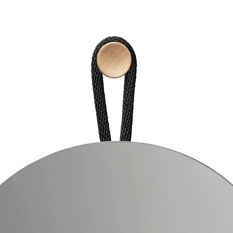 Meet the Lasso Mirror - Round. Axel Bjurström minimized all elements of a traditional wall-hung mirror to the bare essentials, assembling them into a unified and functional design as part of the Lasso Mirror series in collaboration with Design House Stockholm. The mirror is fastened to the wall with a rope that is threaded through two inserts on the back and then secured to the included knob.