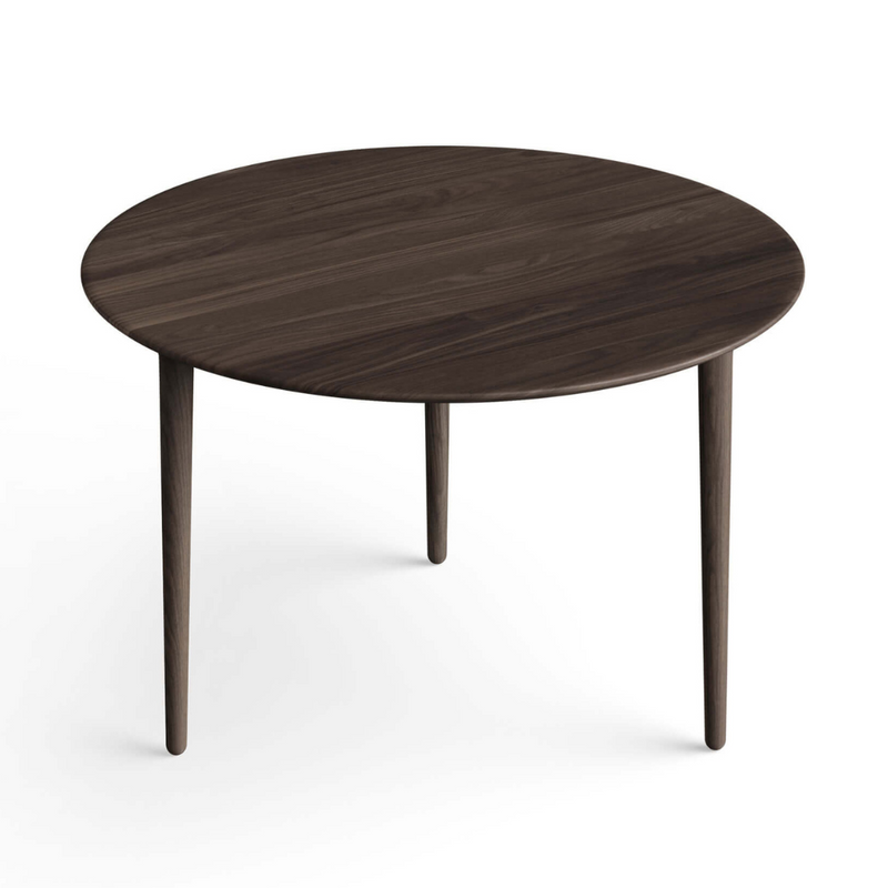 The Evja Coffee Table - Round is part of the Evja family of lounge tables that Torbjørn Bekken designed in 1958 with an organic and almost floating expression. Bekken is known for his technical, detail-oriented, and elegant designs. We love the long uninterrupted curved line from the edge of the table to the legs which narrow slightly towards the floor.