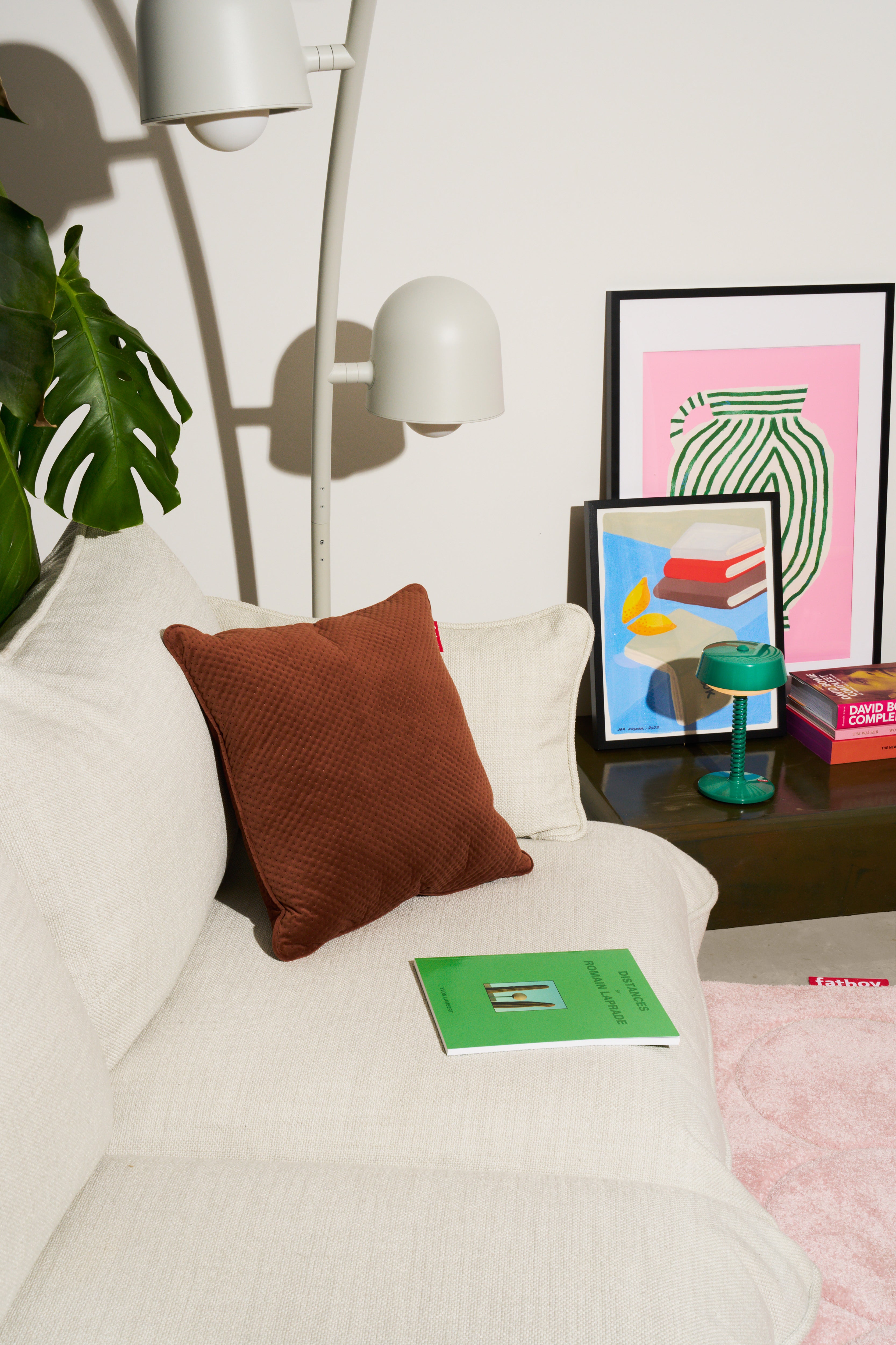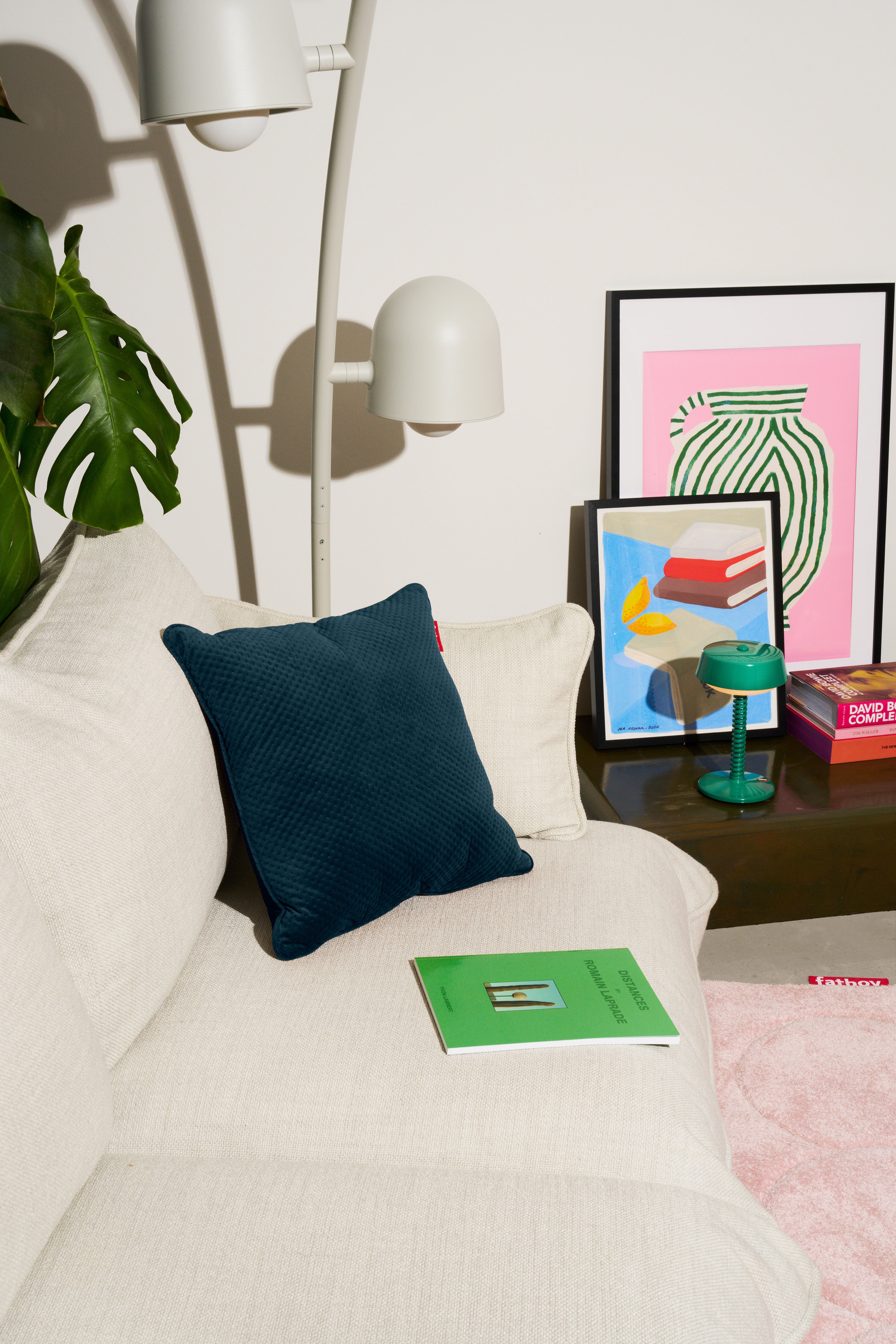 Fatboy’s Square Recycled Royal Velvet Accent Pillow combines comfort with conscious design. Made entirely from recycled materials—including the soft, shimmering velvet cover crafted from PET bottles—it features a durable inner bag that keeps the filling in place. Subtle dots add texture, while the warm, neutral tones suit any interior. Stylish, sustainable, and made to last.
