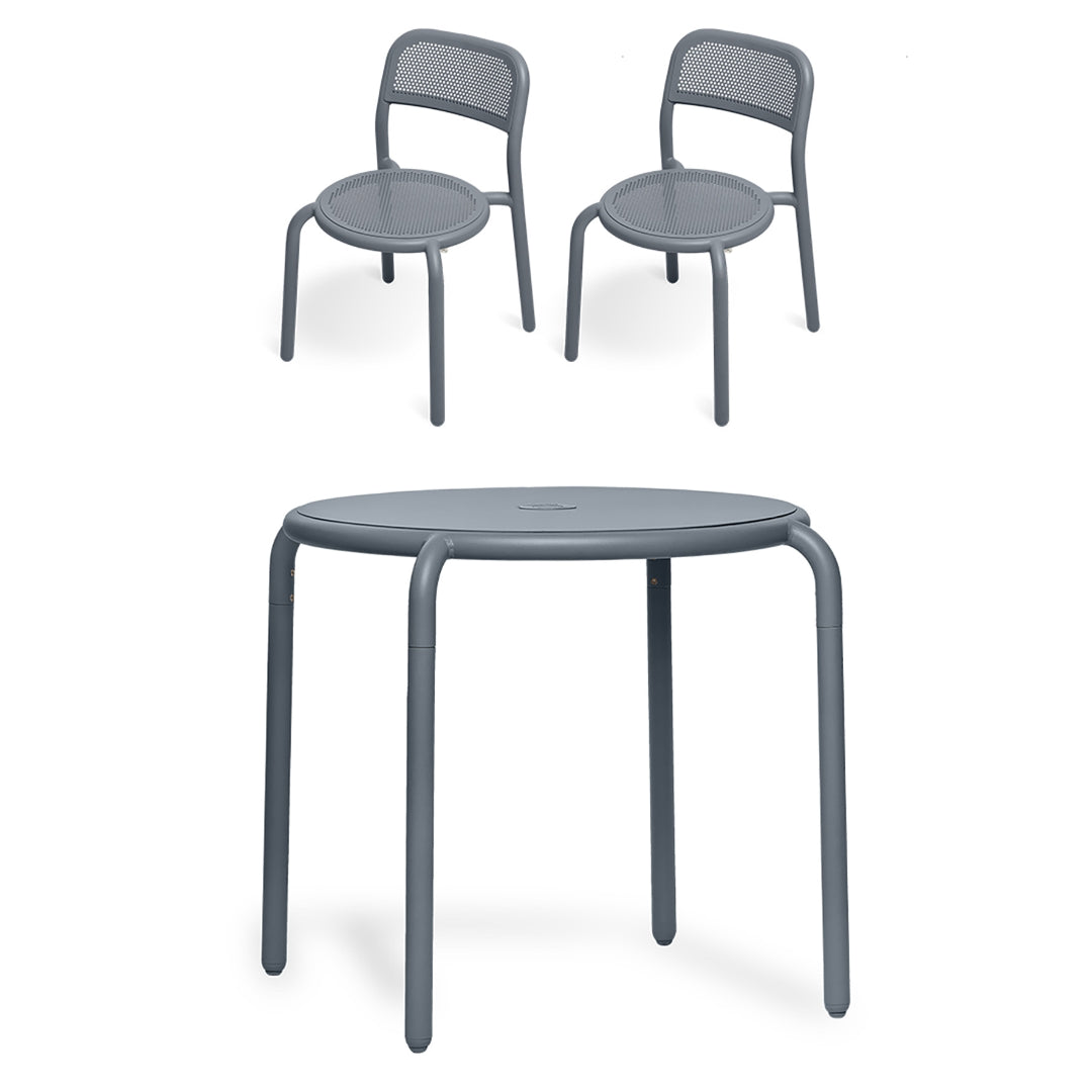 Smart design details elevate the experience: the table features a built-in holder that fits a parasol by day and a candle by night, making it perfect for everything from sunlit lunches to candlelit dinners. Designed for both indoor and outdoor use, the Toni Bistreau set blends durability, versatility, and a playful spirit into one effortlessly stylish package.