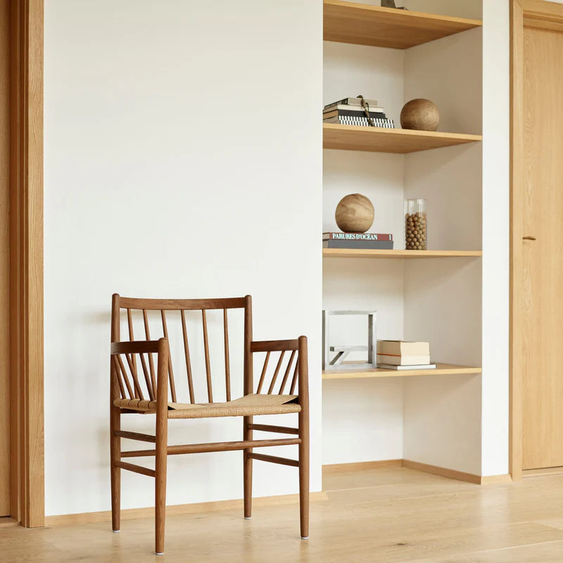 The J81 Armchair by Jørgen Bækmark is a refined extension of FDB Møbler’s iconic 1950s woven series. Featuring gently curved armrests, a hand-woven paper cord seat, and a solid wood frame, it offers exceptional comfort and craftsmanship. Timeless in design and built for everyday living, the J81 works just as well around the table as it does on its own as a standalone piece.