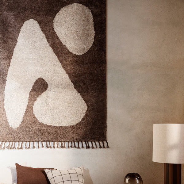 The Ferm Living Abstract Rug features a sculptural pattern and rich, hand knotted wool, making an elegant statement piece for either your floor or wall. Made from soft New Zealand wool in calming, earthy nuances, the rug also has a tactile and serene expression that calms the senses.