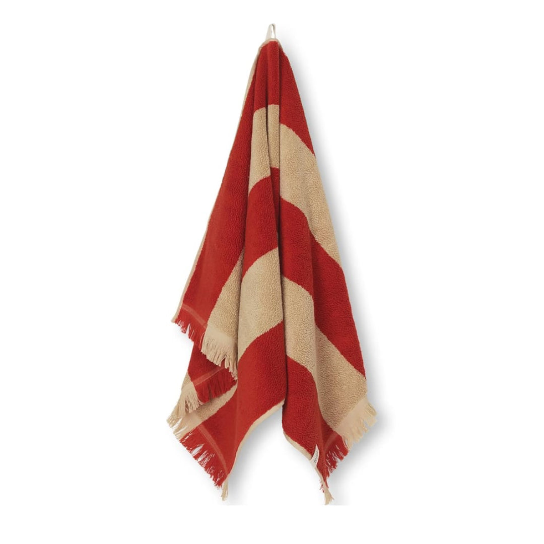 The Ferm Living Alee Hand Towel is made from a rich 100% GOTS-certified cotton terry, which is highly absorbent and made to last. The towel collection comes with decorative fringes at each end, emphasizing its relaxed feel and modern expression.