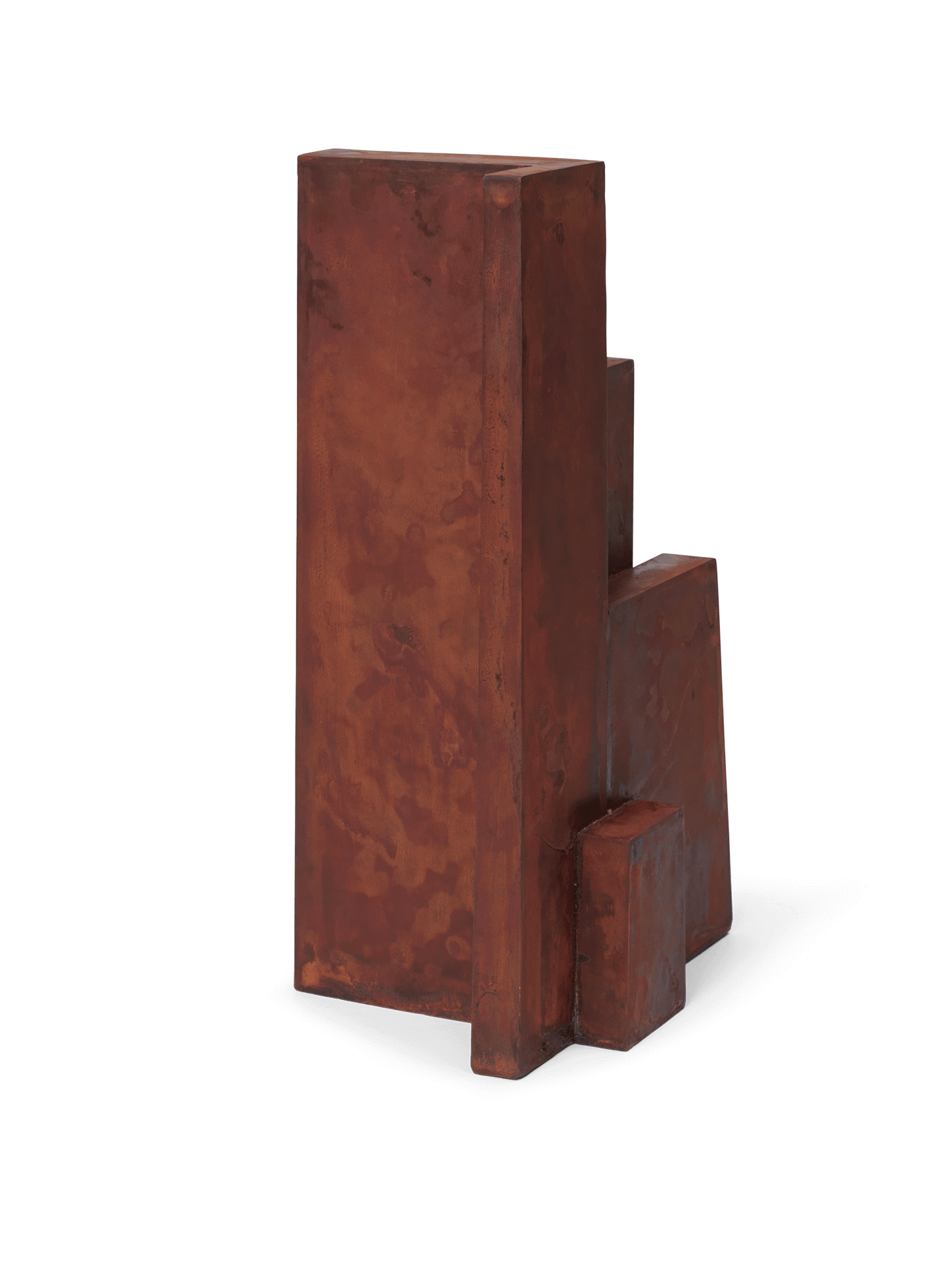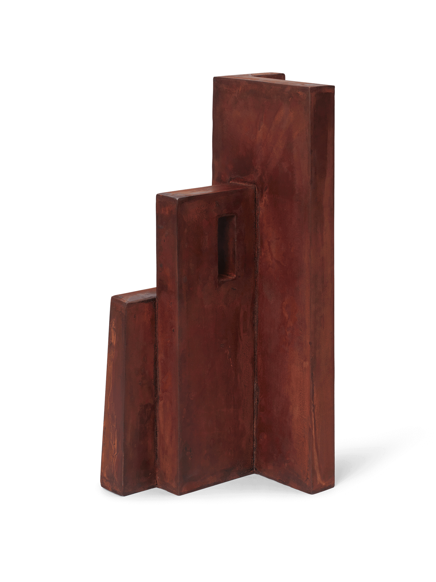 The Ferm Living Aperture Sculpture epitomizes minimalist sophistication, serving as a unique decorative element harmonizing art and architectural elements seamlessly. Named 'Aperture,' it symbolizes an entrance, a subtle yet fascinating viewpoint at the core of the sculpture. Fashioned from painted metal, it exudes a vibrant and captivating tactile allure, combining various textures and hues in a distinctive manner. Its design, both minimalistic and remarkable, enhances the visual appeal of any environment while instilling a serene and composed ambiance.