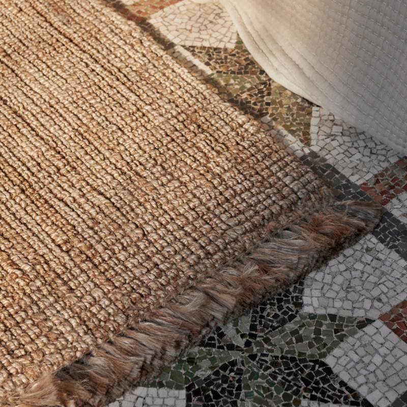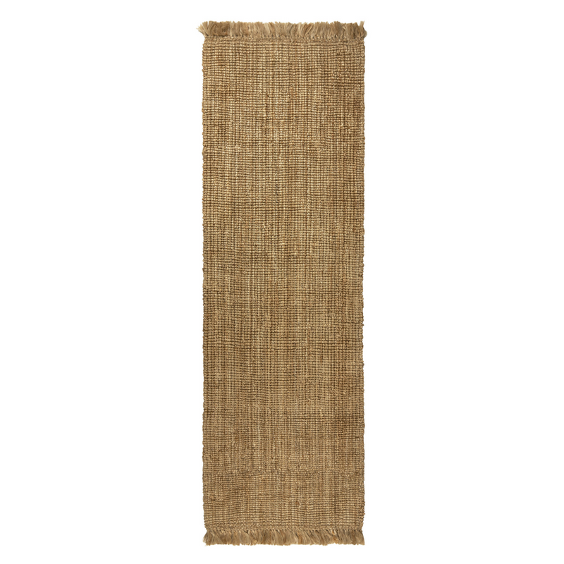 The Athens Rug Runner is inspired by the textured jute rugs often used to add softness to Mediterranean stone houses. Each jute rug is carefully woven by hand, resulting in a beautifully layered and textured expression that adds warmth and tactility to any room. We love the full and soft fringing at each end.