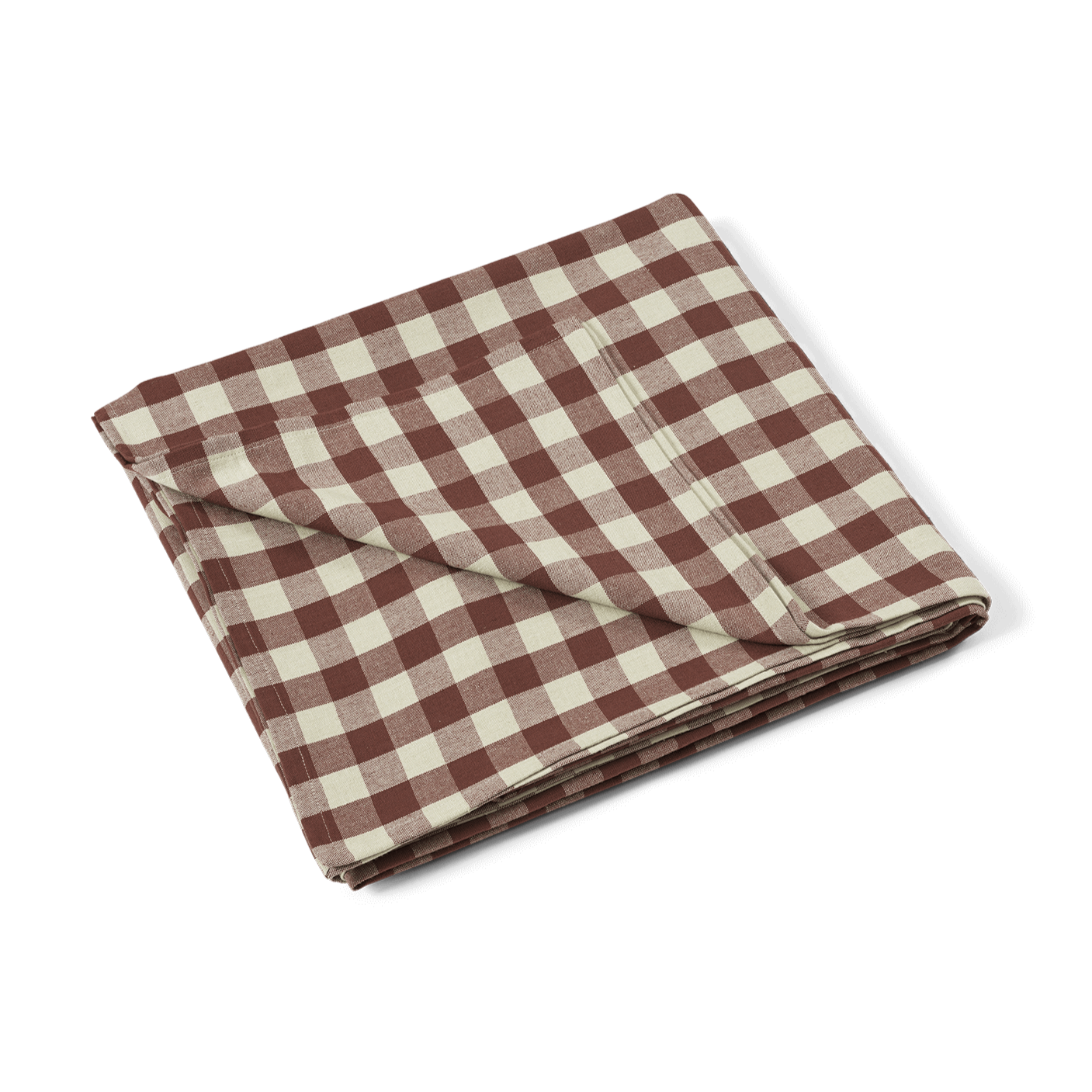 Inspired by the rustic charm of Scottish Highlands bothys—humble wilderness shelters—the Ferm Living Bothy collection presents textiles adorned with timeless check patterns. This range pays homage to the tranquil ethos and simple pleasures of life, mirroring the serene ambiance of these remote retreats. This tablecloth is made from GOTS certified, organic cotton and complements any meal with its timeless charm.