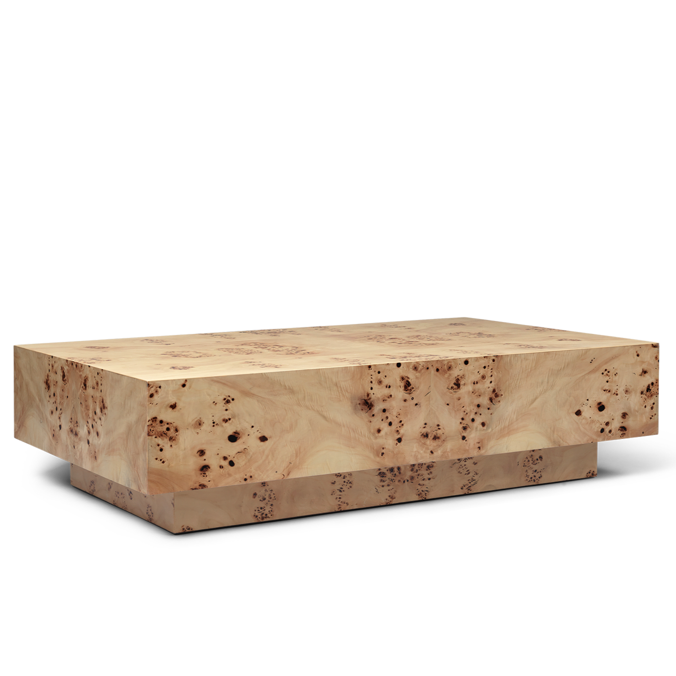 The Ferm Living Burl Coffee Table blends the luxurious textures of burl wood with the clean, minimalist lines of brutalist designs. It's FSC™ certified and made with burl wood veneer and an MDF core, adding a striking yet inviting touch to your living area. This piece expertly combines strong design elements with the graceful and cozy appeal of wood patterns.